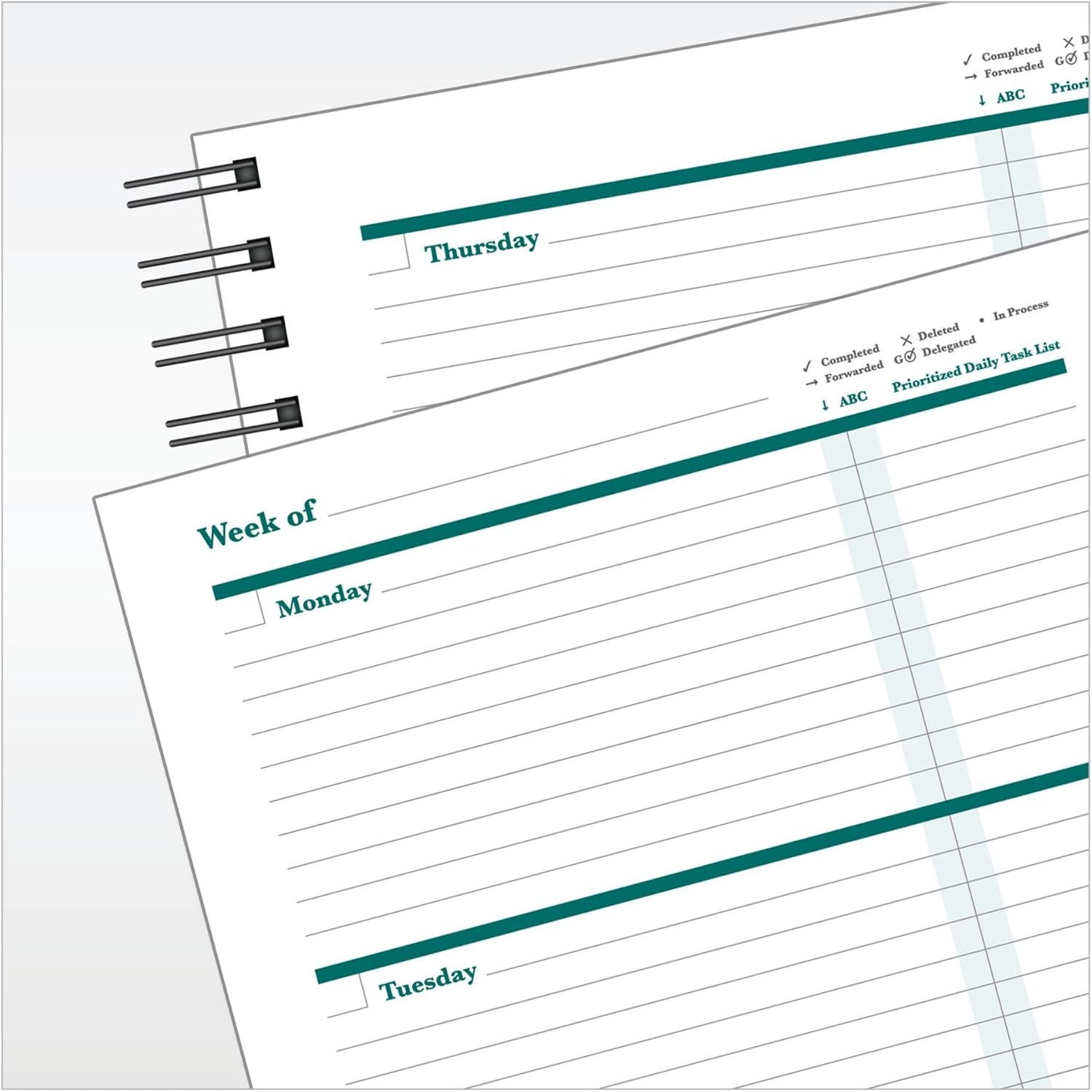 - Weekly Layout for Focused Planning: Each week is laid out on a two-page spread, providing a clear overview of your appointments, tasks, and priorities.