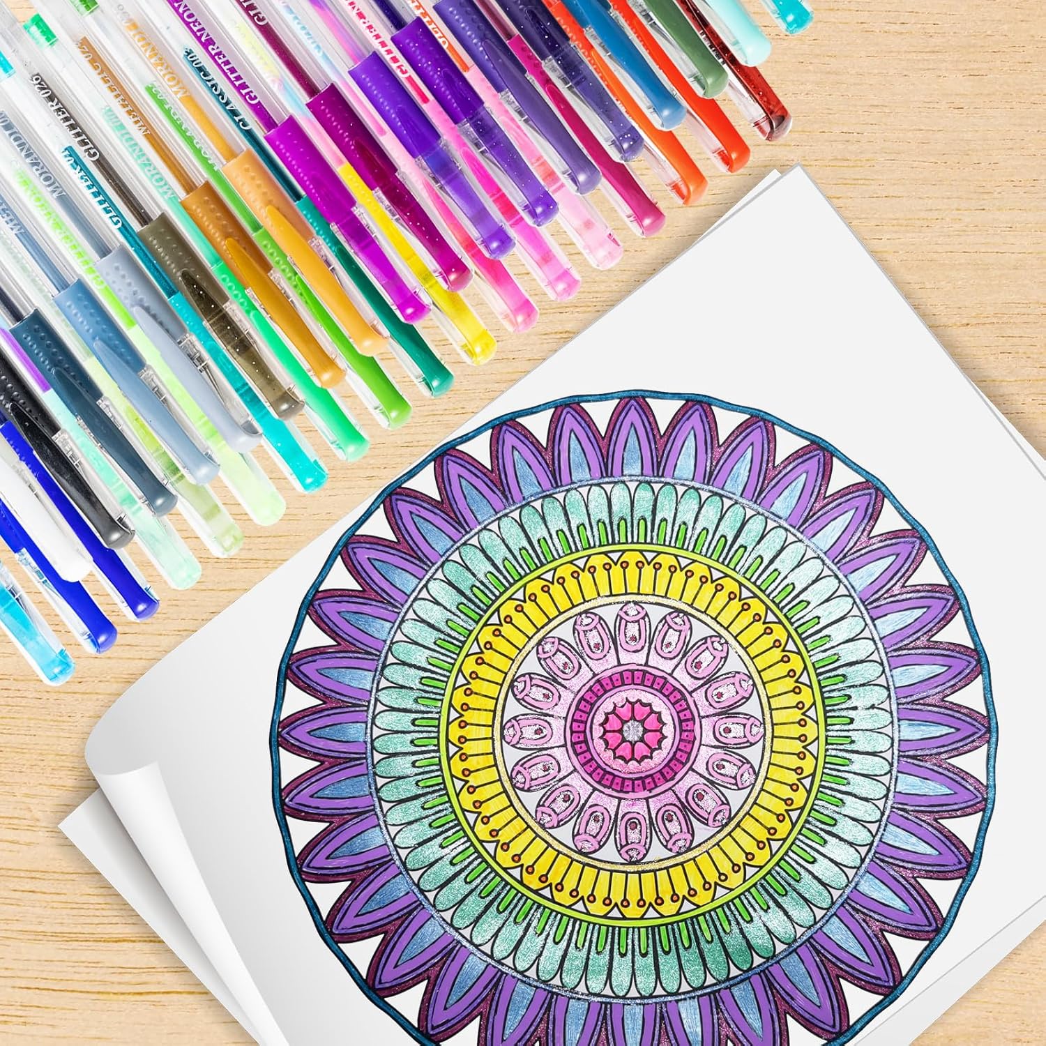 - LONG LASTING:Our glitter gel pens come with 40% more ink, can coloring more pages than before. Do not need find refills when doing artworks. Our colorful pens are easy to hold and comfortable for note taking, drawing, crafting, doodling and journaling