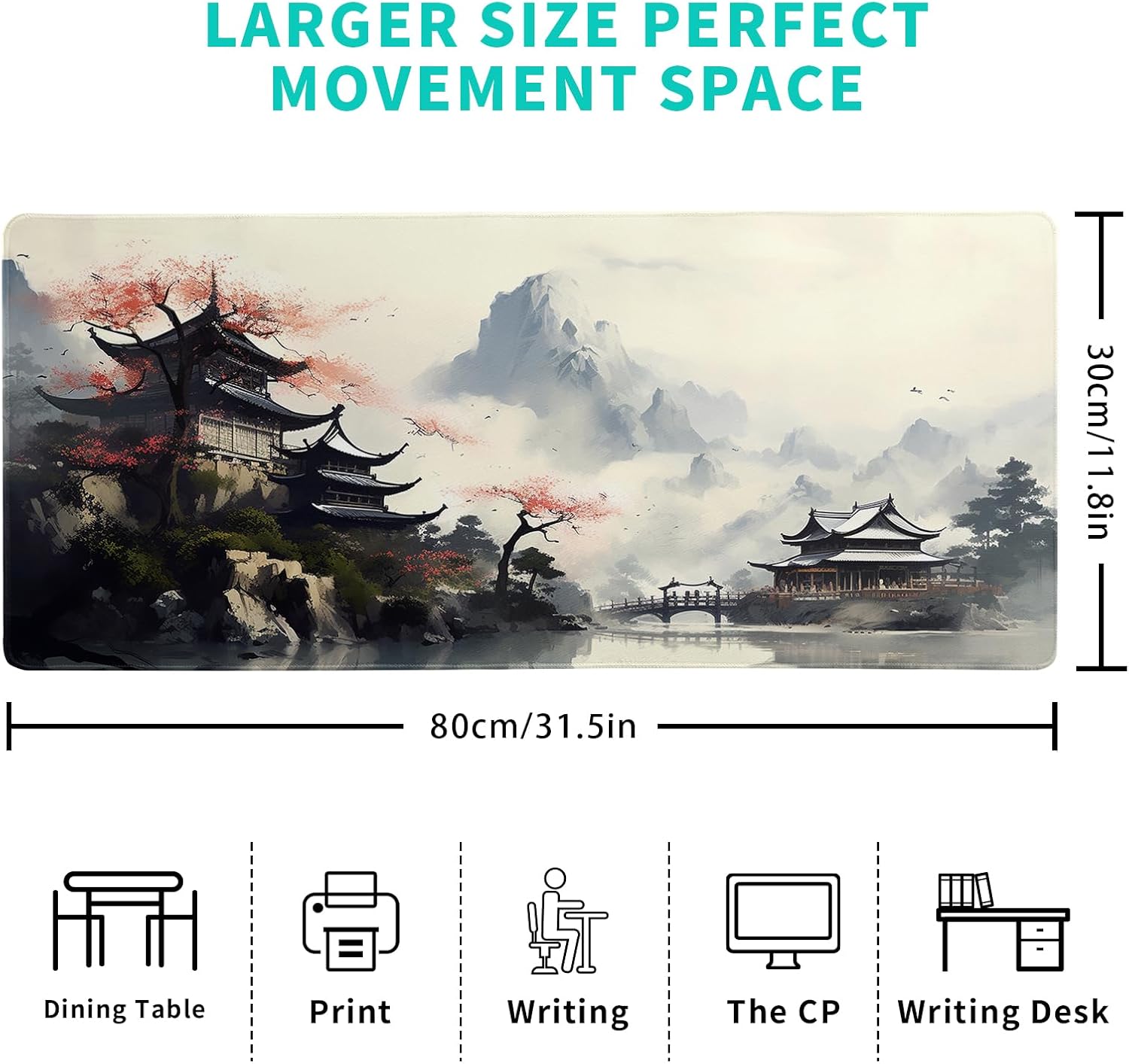 - Extended Size: The Japanese Mouse Pad Is Large Enough, 11.8''X 31.5'' ( 800mm X 300mm X 3mm), Will Fit Your Desktop Perfectly And Provide Perfect Movement Space, Offers Plenty Of Room For Gaming Or Office Works All While Protecting Your Desk, Applies To All Types Of Mouse Keyboards And More.