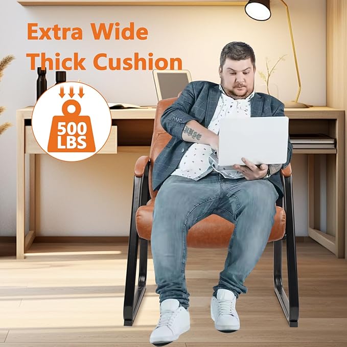 CLATINA Big & Tall 500 lb. Guest Chair, PU Leather Office Reception Chairs with Sled Base, Desk Chair No Wheels for Waiting Room Conference Lobby Computer Living Room, Brown, 2 Pack