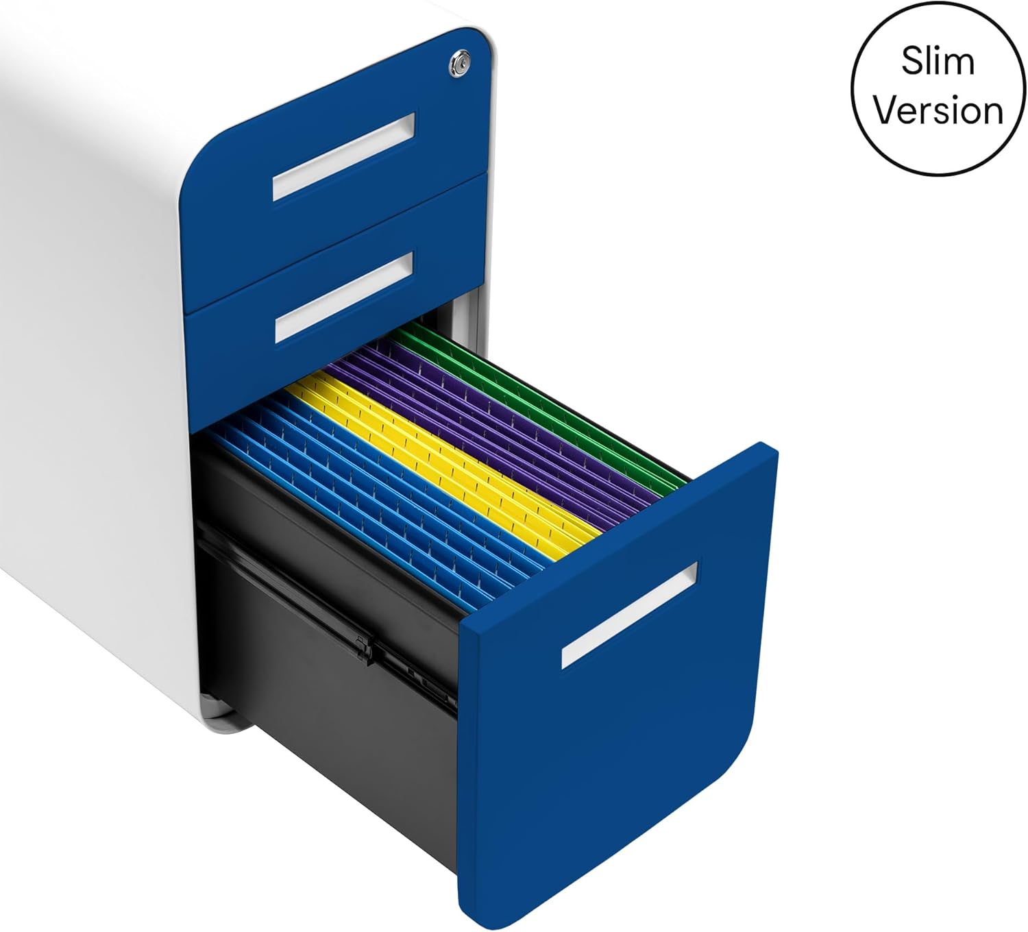 Laura Davidson Furniture Stockpile Slim 3-Drawer Mobile File Cabinet with Lock - Under Desk Metal Filing Cabinet, Legal/Letter File Folders, Wheels and Stationary Feet, Pre-Assembled, Blue Faceplate