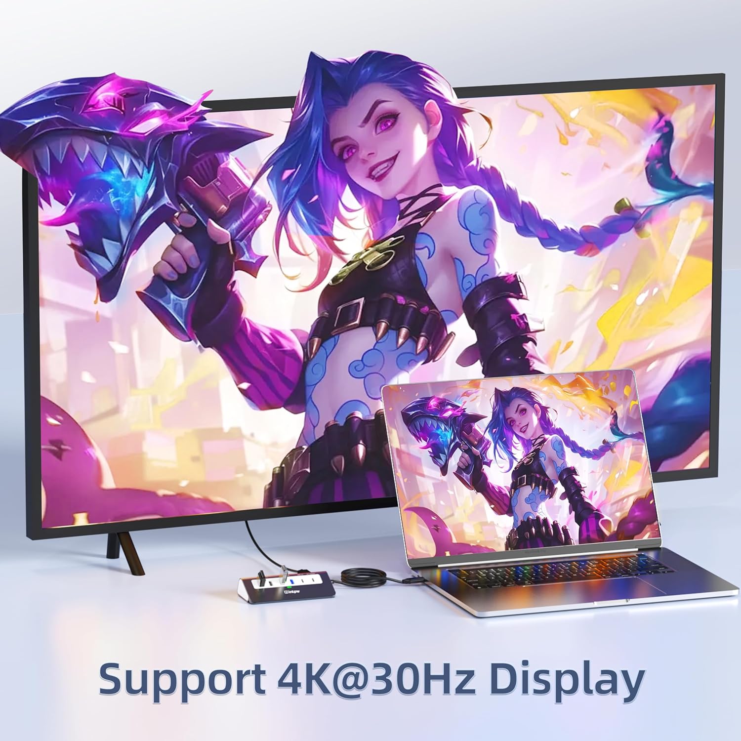 - HDMI 4K@30Hz: intpw usb hub for laptop can stream 4K@30Hz video to HDTV, Monitors or projectors via HDMI port, ensuring an immersive 3D visual experience for you. (Note:The host USB-C port on your device must support Display Port Alt Mode)