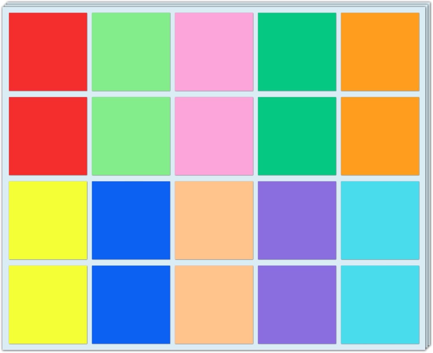 - 10 Assorted Colors. Red, Light Green, Pink, Green, Orange, Yellow, Blue, Light Orange, Purple, and Light Blue