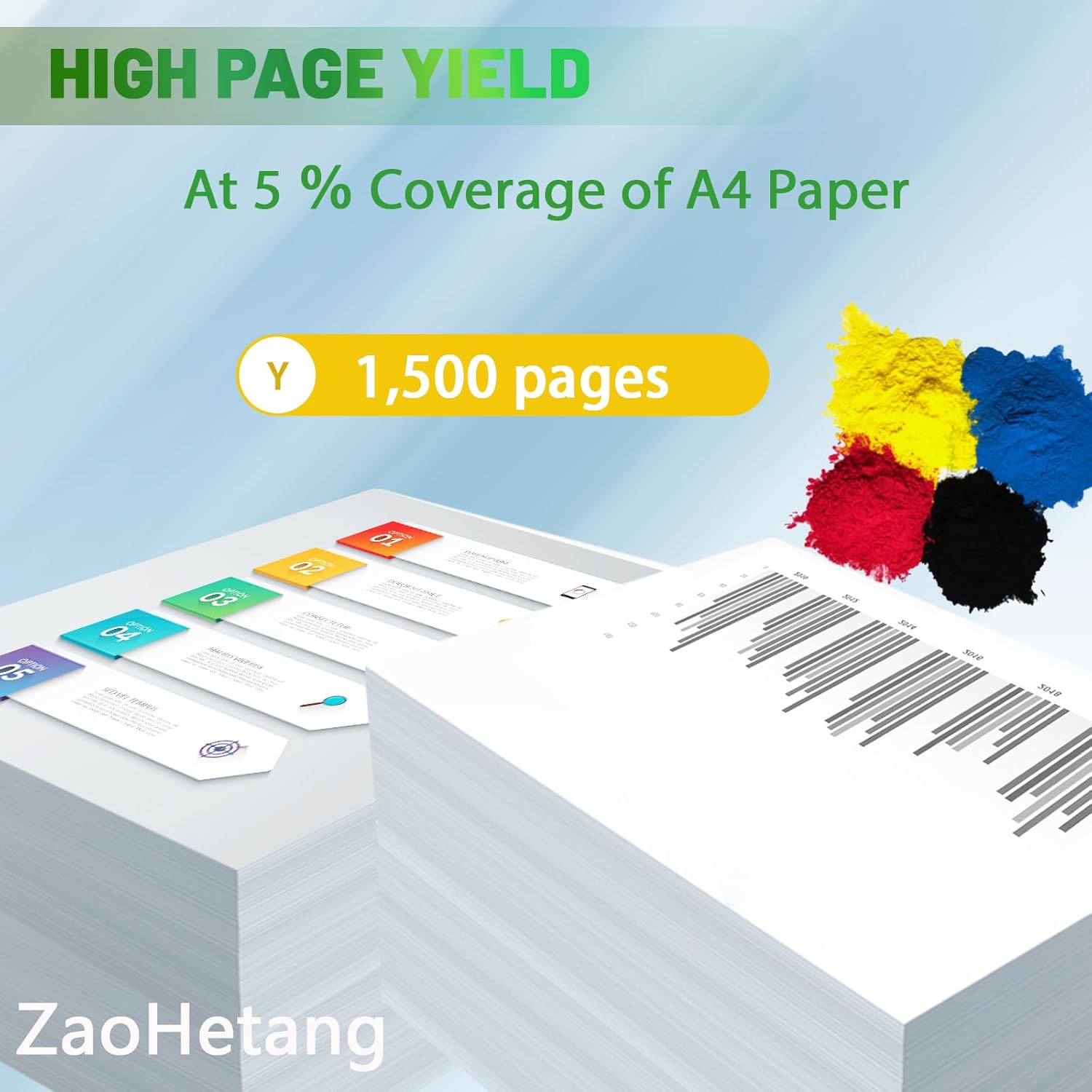 - Page yield: 1,500 pages per yellow toner cartrdges 5% coverage