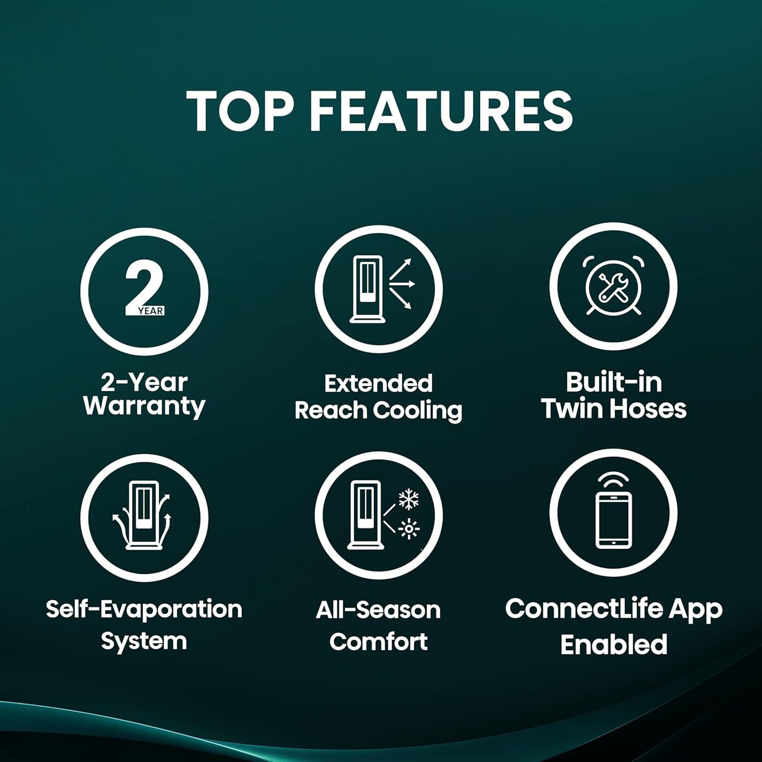 - Effortless Installation – The built-in twin hose system and snap-in window kit allow for a quick, hassle-free setup, so you can enjoy comfort in minutes.