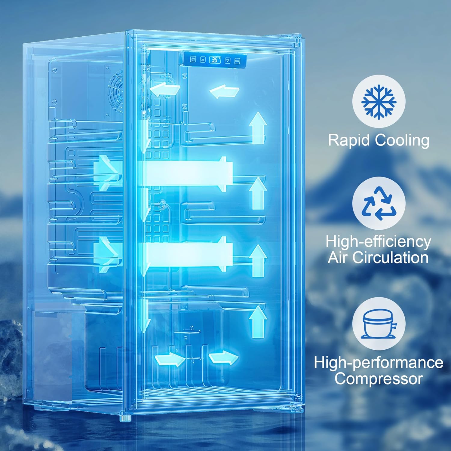 - ๐๐บ๐ฝ๐ฟ๐ผ๐๐ฒ๐ฑ ๐๐ป๐๐๐น๐ฎ๐๐ถ๐ผ๐ป & ๐๐ป๐ฒ๐ฟ๐ด๐ ๐๐ณ๐ณ๐ถ๐ฐ๐ถ๐ฒ๐ป๐ฐ๐: This refrigerator is built with double-layer LOW-E glass and a precision-engineered sealing strip to provide superior insulation and prevent dust buildup. These features help maintain a stable internal temperature and humidity, creating the perfect storage conditions for your drinks. Additionally, the energy-efficient design minimizes power consumption, making this fridge a great choice for both your wallet and the environment.