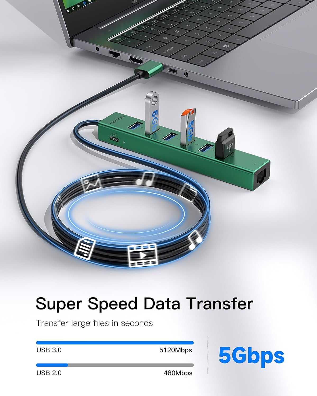 - 【5Gbps Data Transfer Speed】The USB 3.0 Hub extension provides up to 5 Gbps data transfer speed, which is more than 10 times faster than USB 2.0, and it is backwards compatible with USB 2.0/1.0