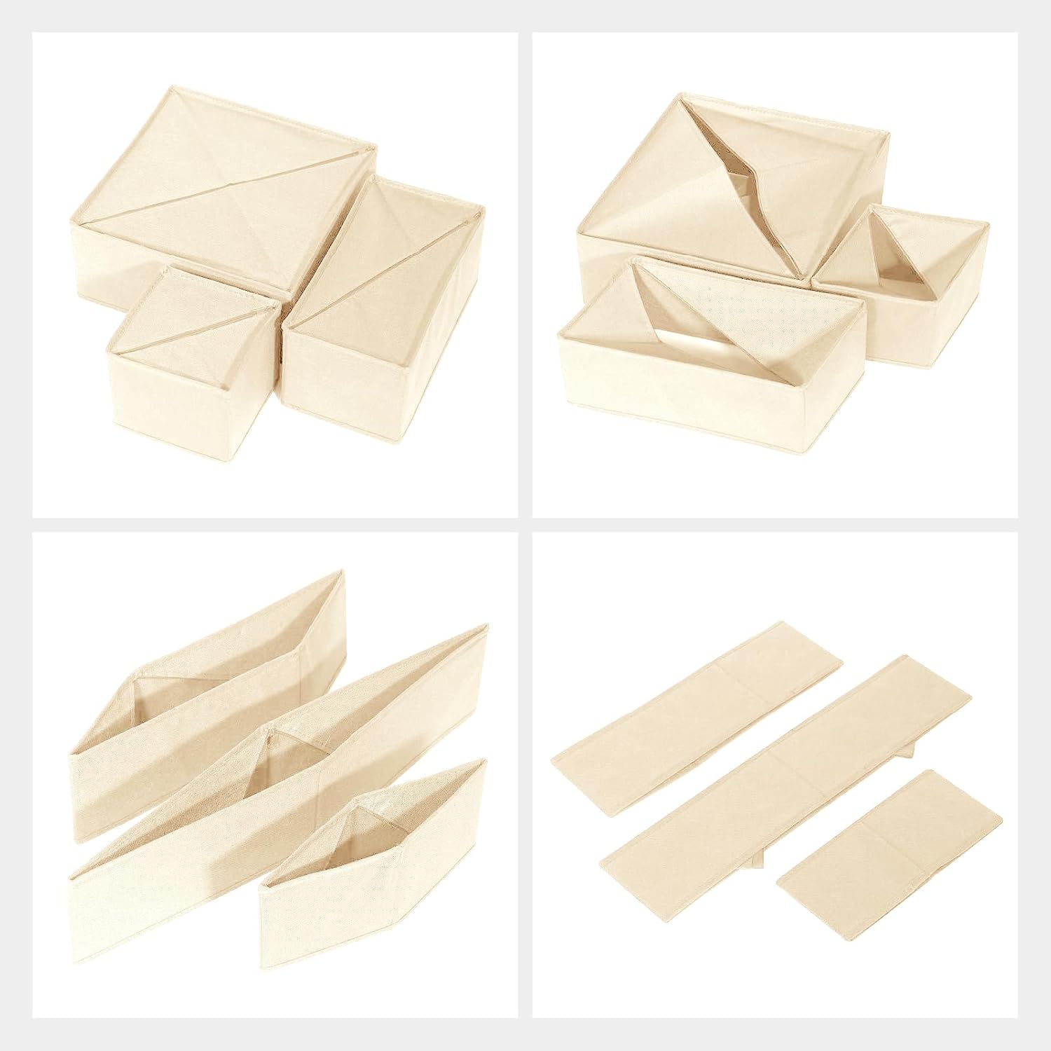 - ăQUALITY MATERIALăThis fabric dresser drawer divider organizer is made with non-woven fabric,which is soft,breathable,easy clean,durable and not easy to bend,deform and tear.These foldable clothes organizer are stackable to take advantage of the space.
