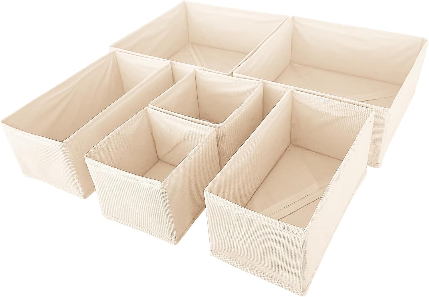 - ăSAVE SPACEăThe 6 pack dresser drawer organizers come in different sized boxes to match all sizes of drawers.Drawer organizers are easy to organize your items so that the items all have their own separate space to make life neater.Sort underwear,bras,socks,ties,scarves,shirts,t-shirts,lingerie,accessories,etc.