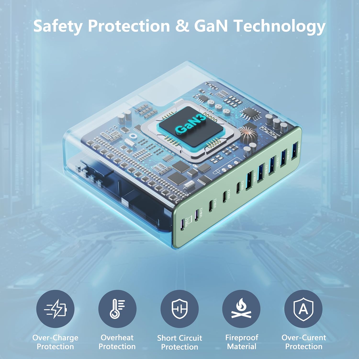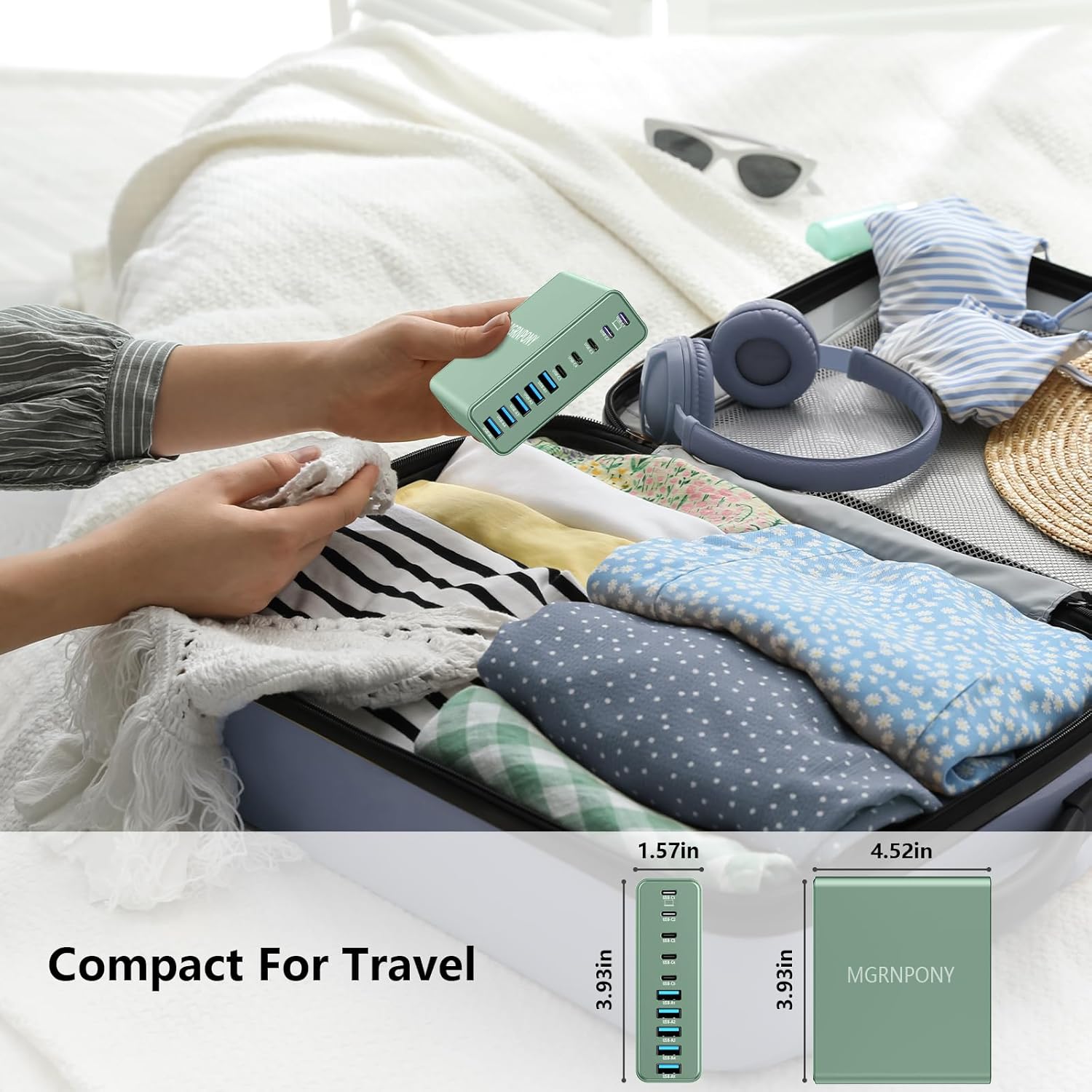 320W USB C Charger Block, 10-Port USB C Charging Station GaN III PD 65W PC Laptop Fast Charger Adapter for MacBook Pro/Air, DELL, iPad, iPhone, Samsung Galaxy (Green)