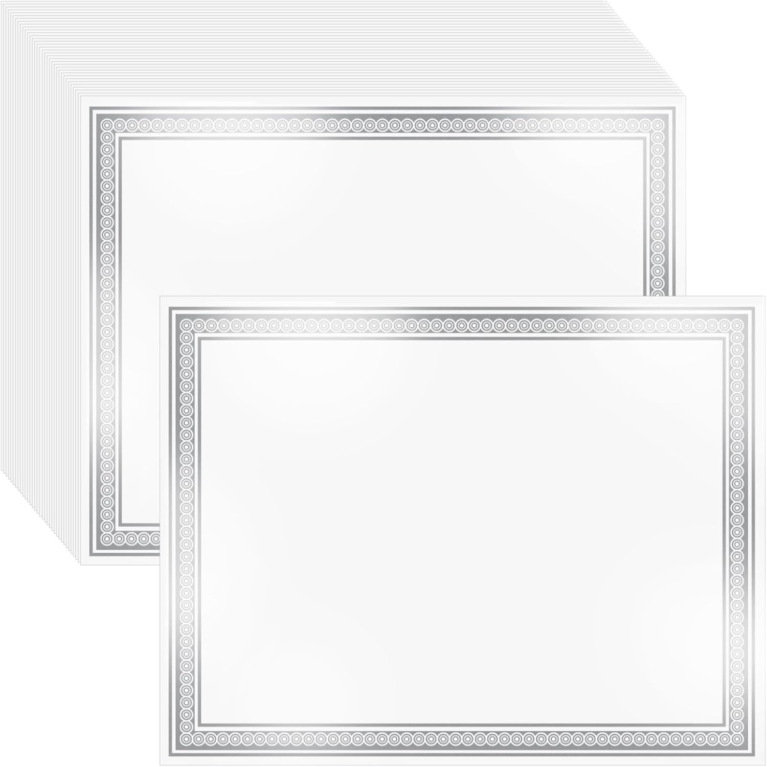 50 Count Certificate Paper 8.5 x 11 for Printing,Blank Silver Foil Border,Award Certificate Paper for Business,Graduation Diploma,School and Achievement (White)