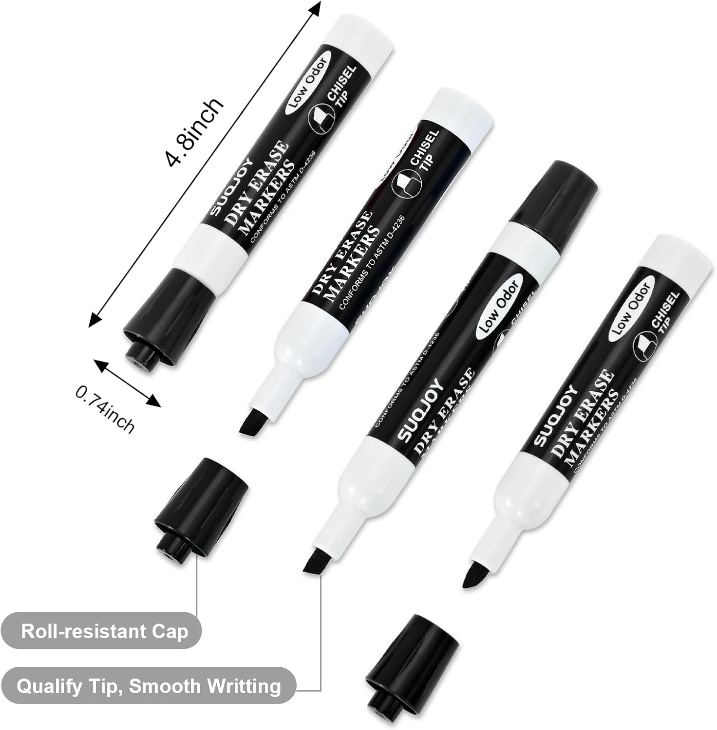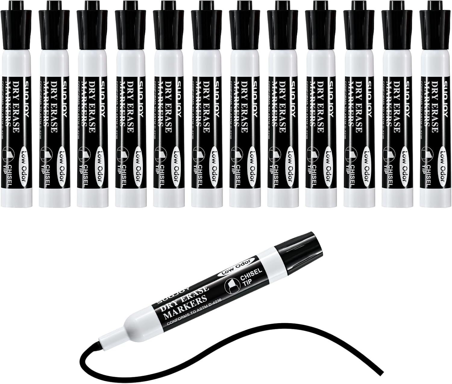 Dry Erase Markers, Chisel Tip Whiteboard Marker, Low Odor Thick Dry Markers, 12 Bulk Black Color Markers for Kids/Teachers.