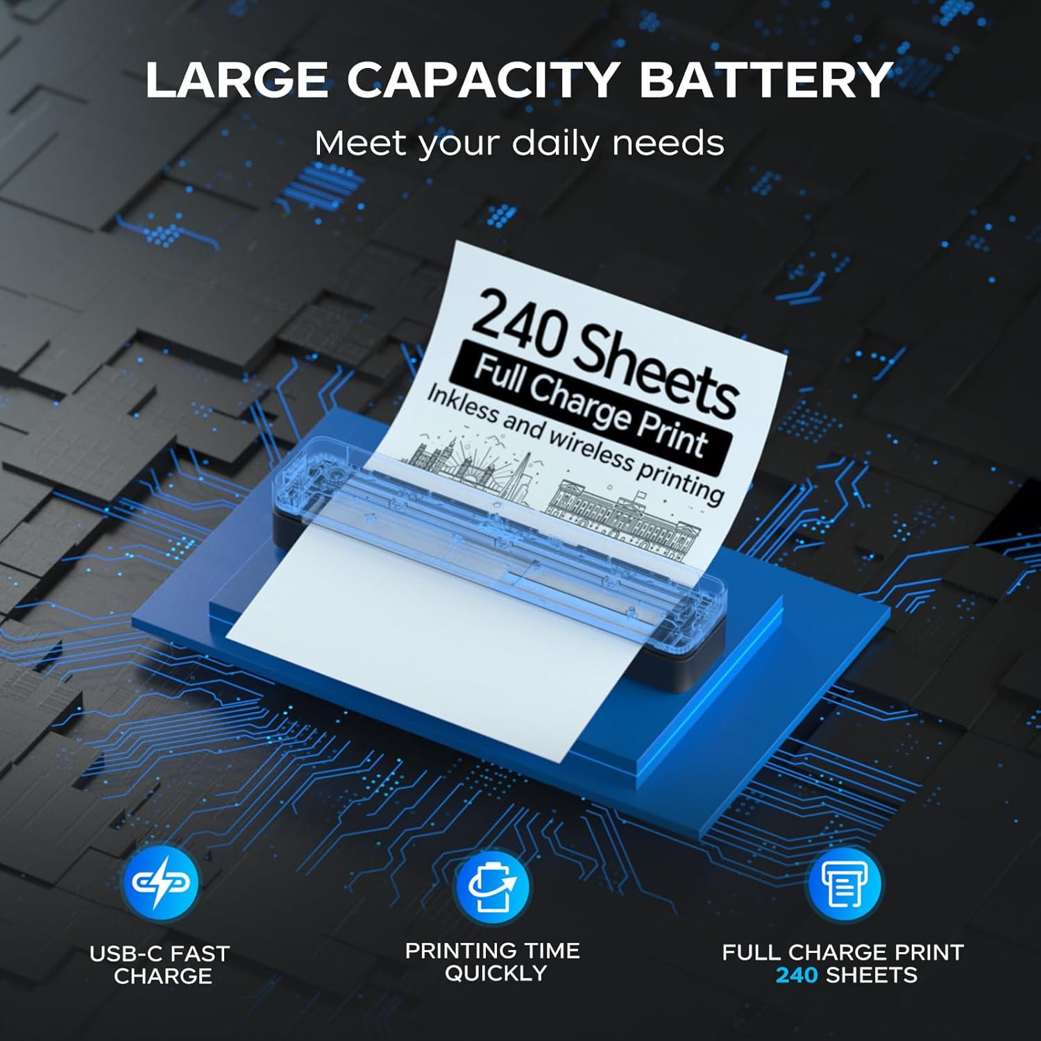 PRT Thermal Portable Printer Wireless for Travel, Inkless Bluetooth Support 8.5"x11" US Letter, A4, Compatible with iOS, Android, Laptop, Mobile Printer for Office, Vehicle, Home Use