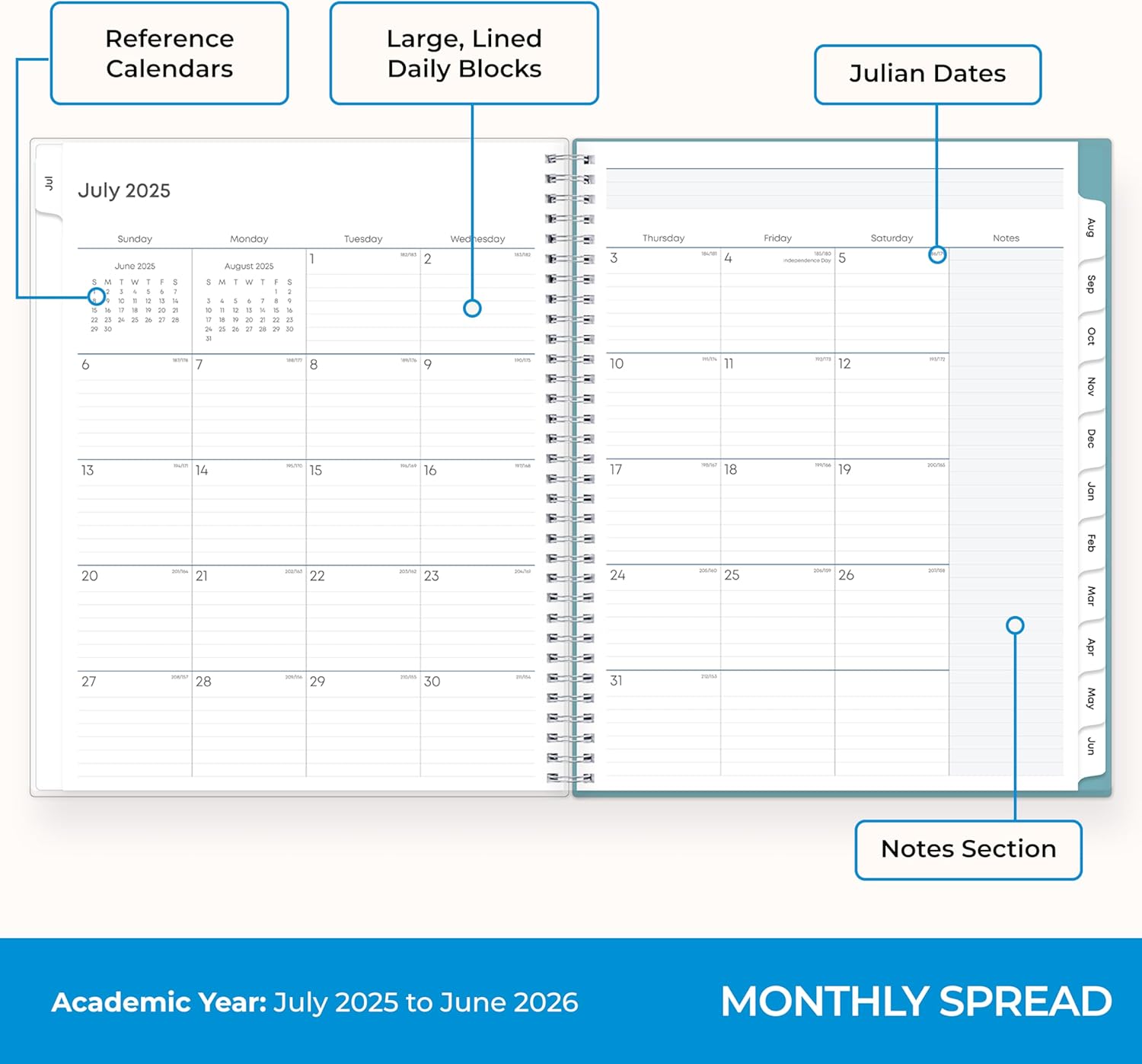 - [STAY ORGANIZED ALL YEAR] July 2025 - June 2026 day planner with 12 months of monthly and weekly pages for easy academic planning and scheduling; 2 additional monthly pages (May 2025 - June 2025) are included