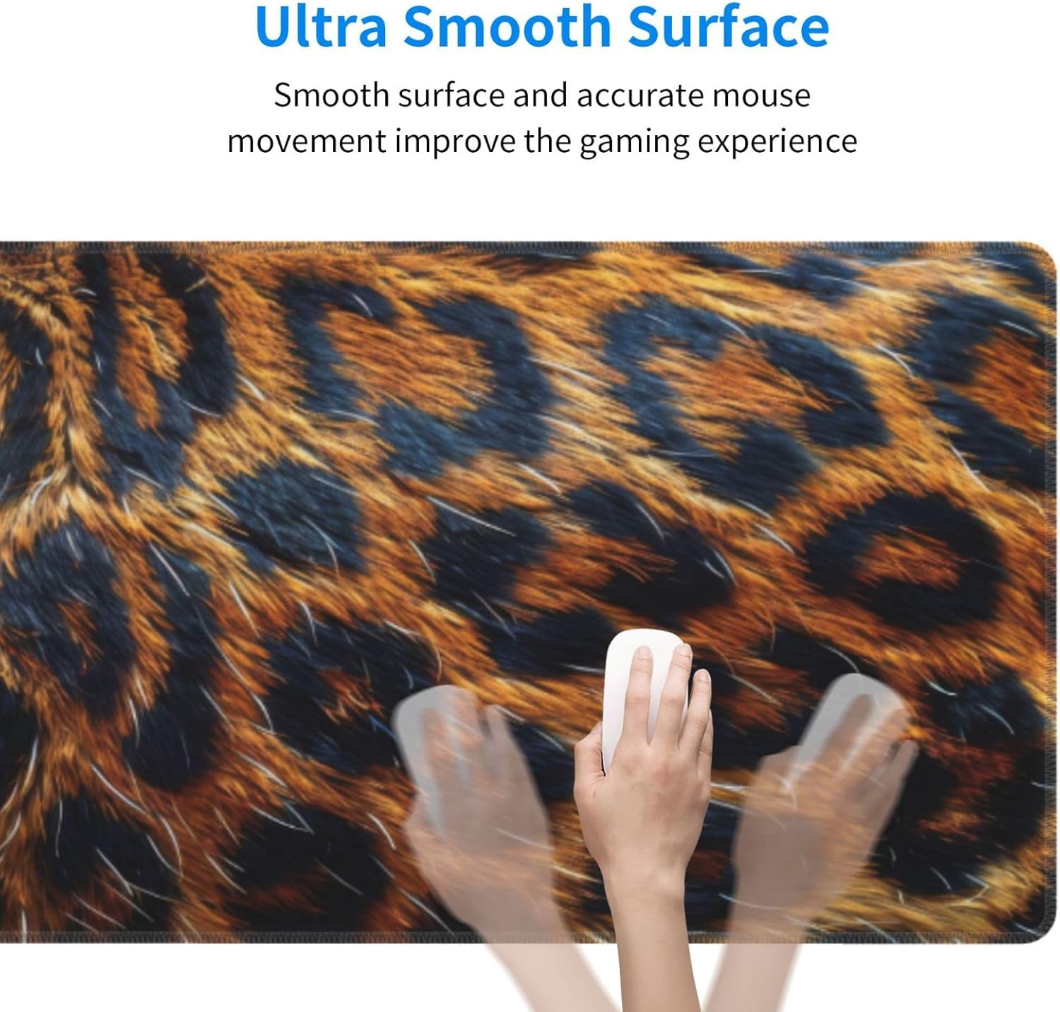 Gaming Mouse Pad, Large Non-Slip Rubber Base Mousepad, Keyboard Mouse Mat, Desk Pad with Stitched Edges, 31.5x11.8inch, Leopard-Skin Pattern