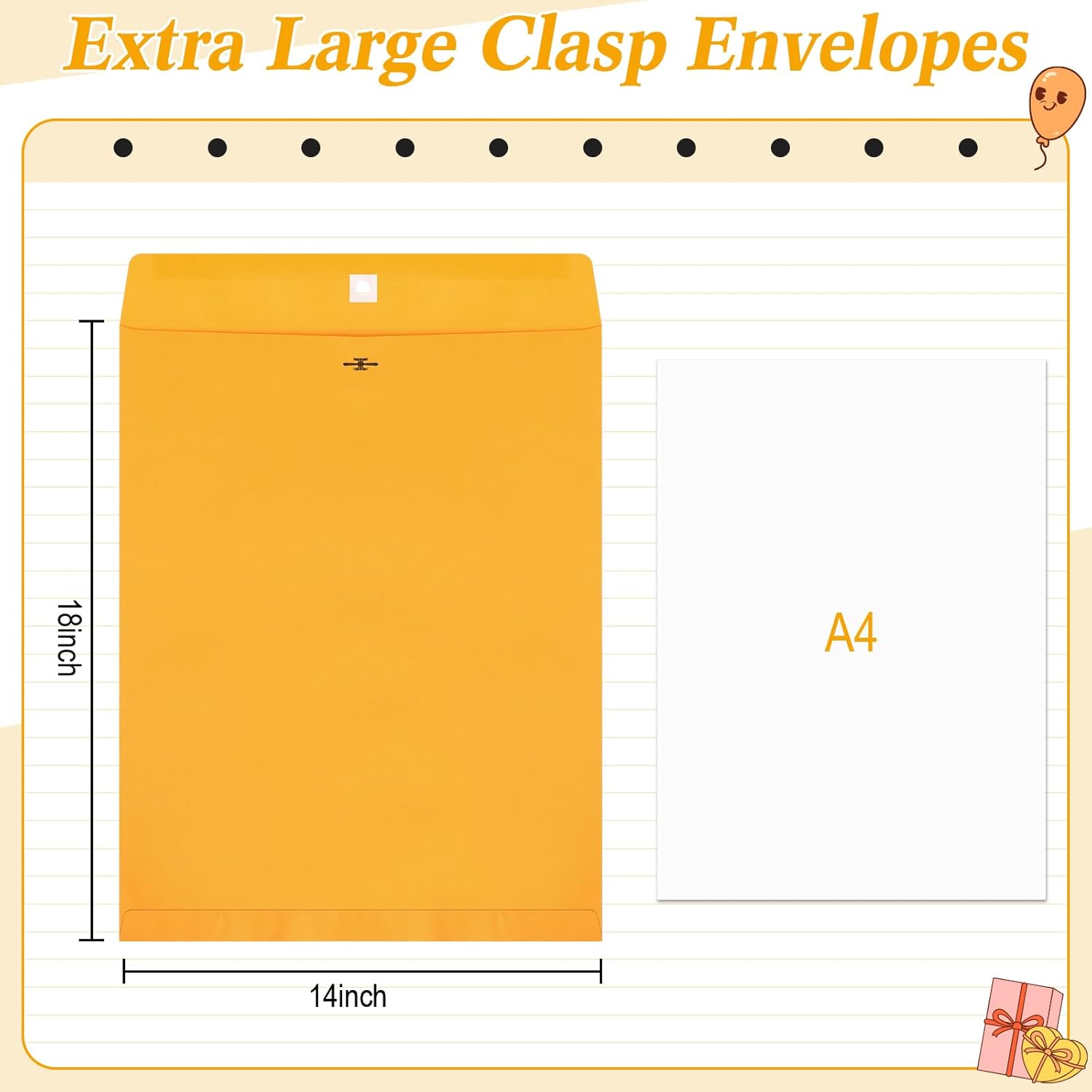 - For Office: the clasp design of our brown kraft envelopes boasts the ability to open and close repeatedly without damaging its contents; So, whether you're posting large documents or simply keeping annual reports on your desk, our 14 x 18 envelopes are sure to come in handy