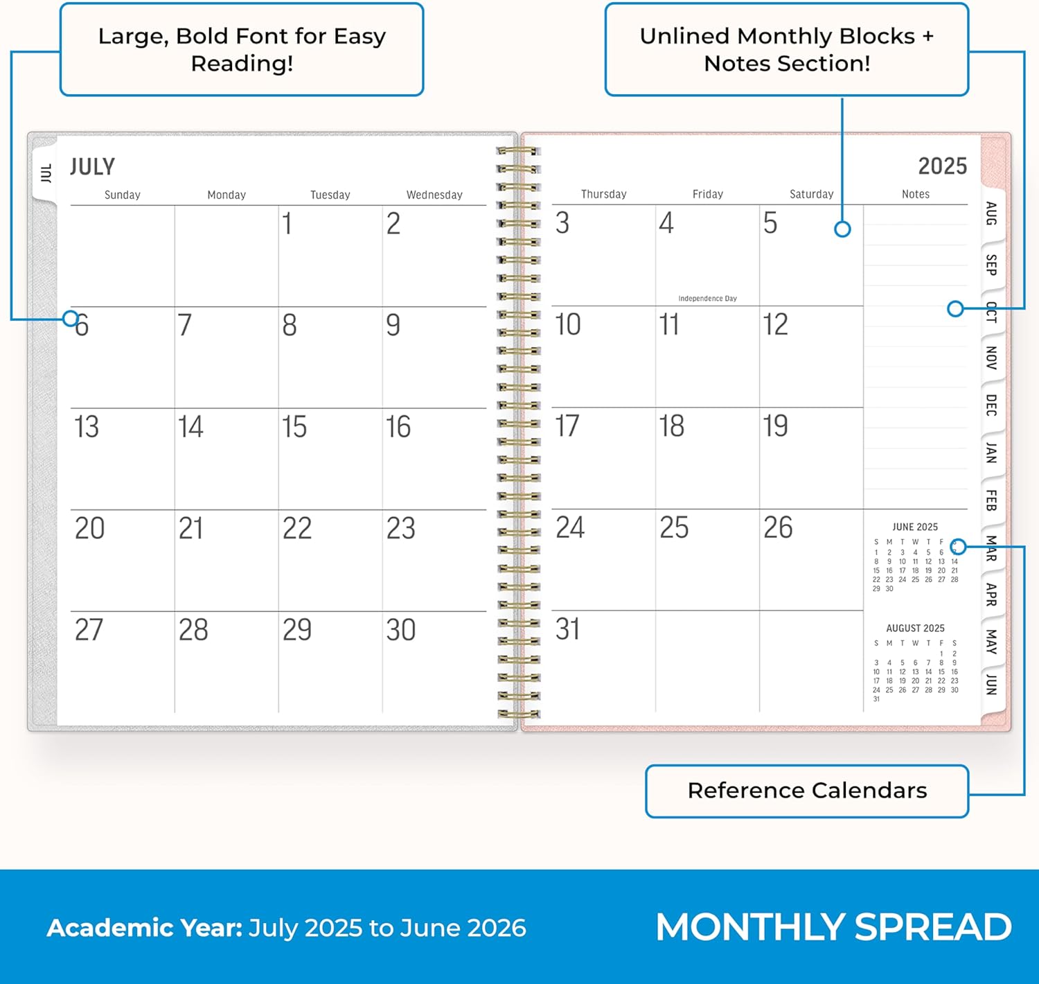 - [STAY ORGANIZED ALL YEAR] July 2025 - June 2026 day planner with 12 months of monthly and weekly large print pages for easy academic planning and scheduling; 2 additional monthly pages (May 2025 - June 2025) are included