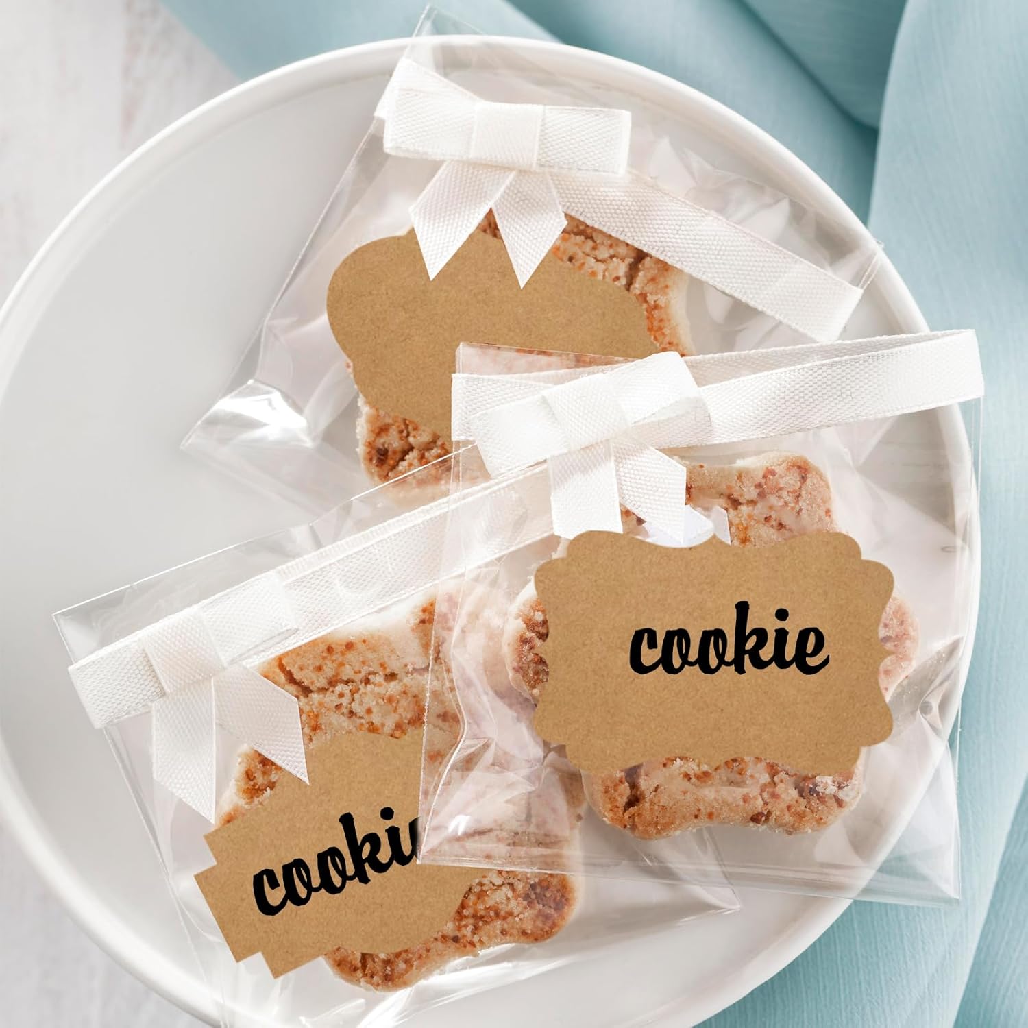 Dark Kraft Labels Stickers, 250 PCS 3" x 2" Fancy Shape Stickers Labels for Storage Box or Food Jars Holiday Present Stickers Christmas Gift Tags
