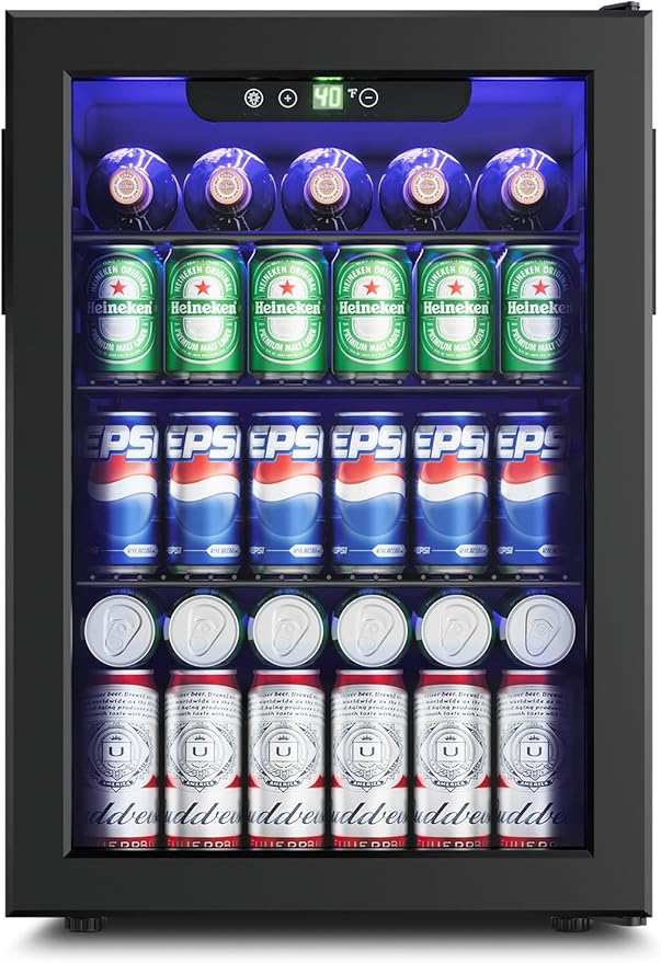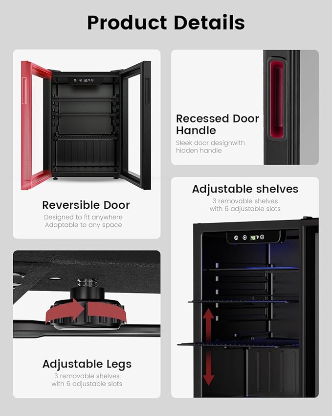 - Powerful & Quiet Performance - Operating at less than 36 dB, this wine and beer fridge is quieter than most traditional mini wine coolers, making it ideal for bedrooms and shared spaces. Its high-efficiency compressor consumes minimal power, providing a cost-effective solution for wine enthusiasts and beverage lovers alike.