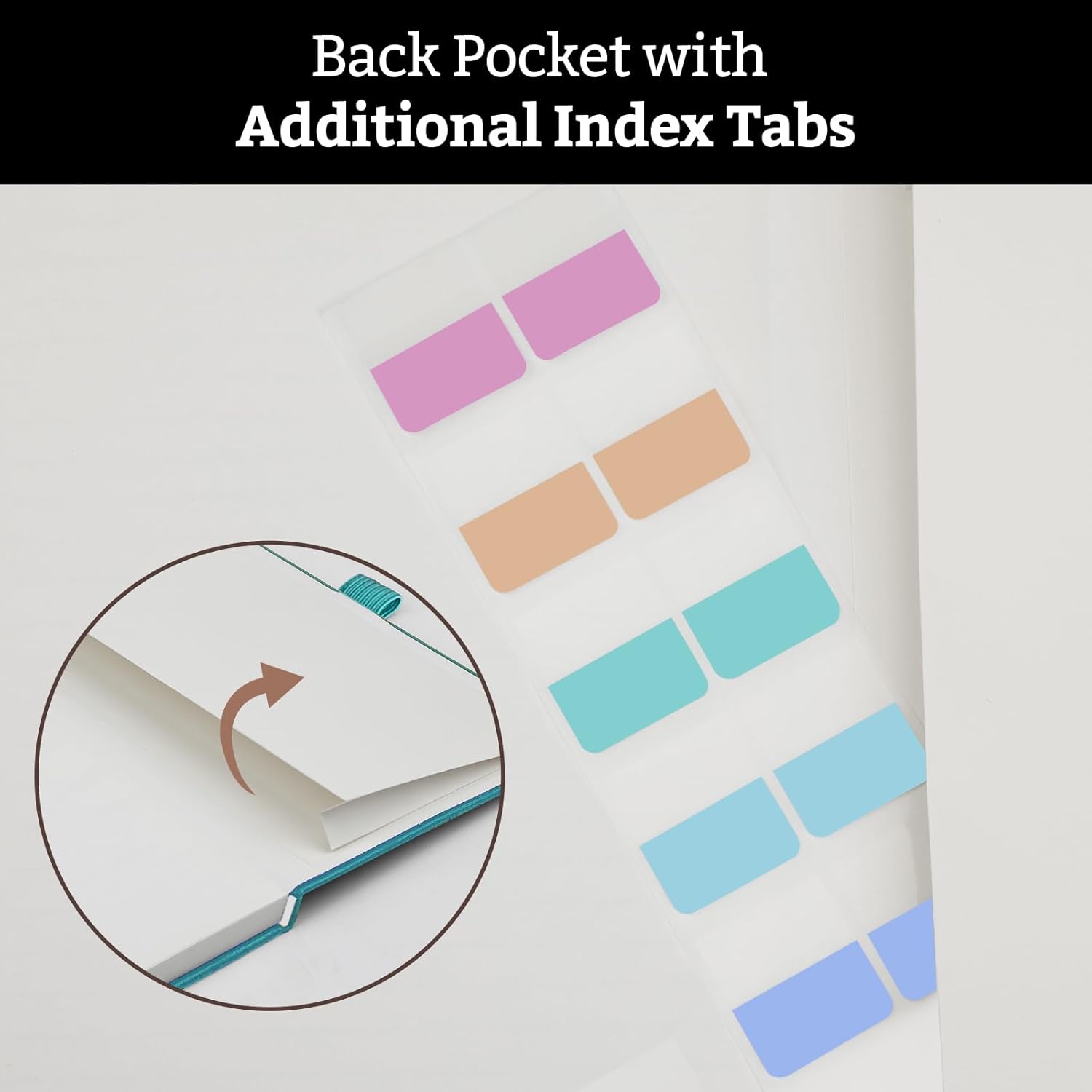 - Bonus Tabs: 1 sheet (12 index tabs) in the pocket—easy to apply/remove without damaging paper.