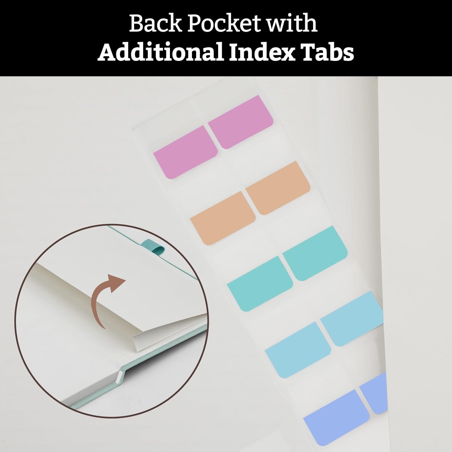- Bonus Tabs: 1 sheet (12 index tabs) in the pocket—easy to apply/remove without damaging paper.