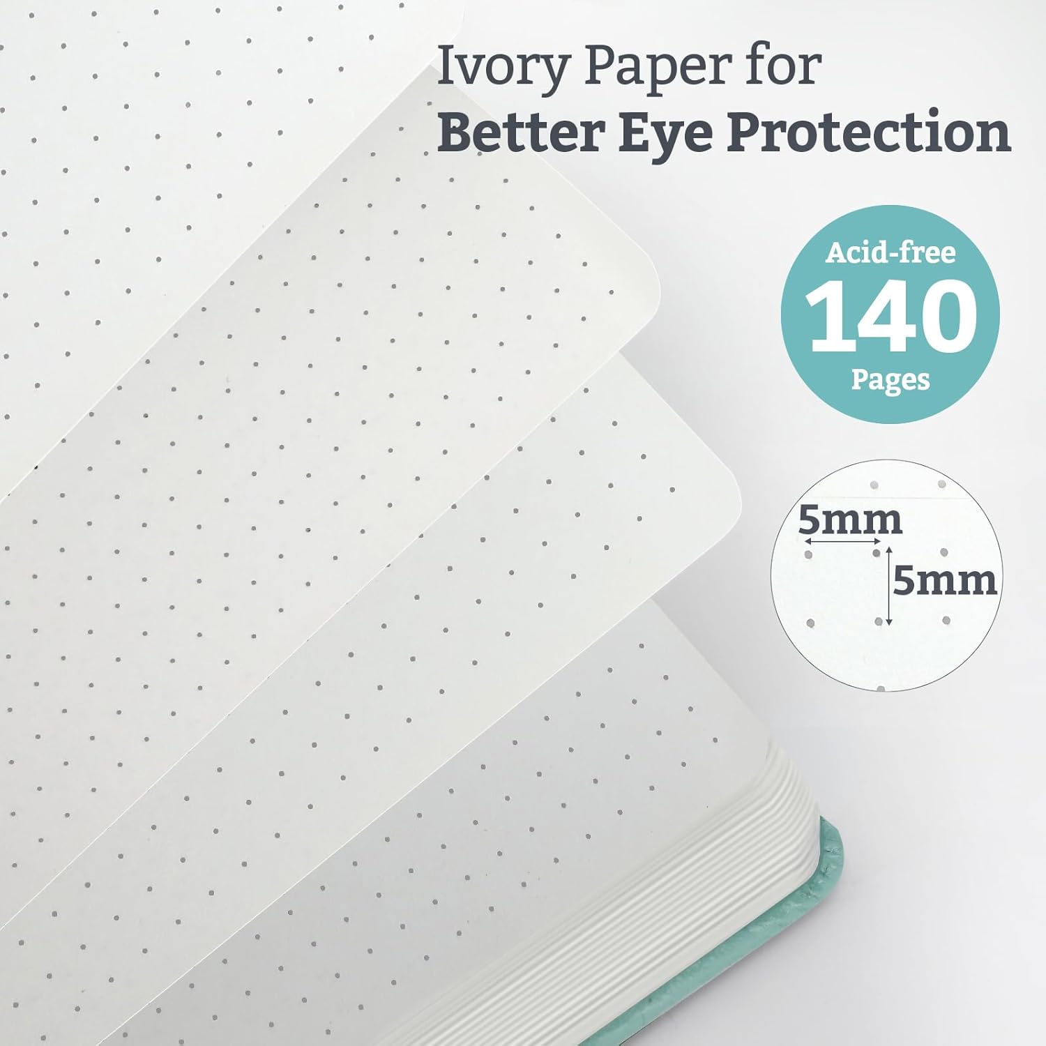 - Dotted Pages: 140 pages (70 sheets) of dotted, 120gsm acid-free paper resists bleeding and ghosting, compatible with most pens. Ivory hue eases eye strain.