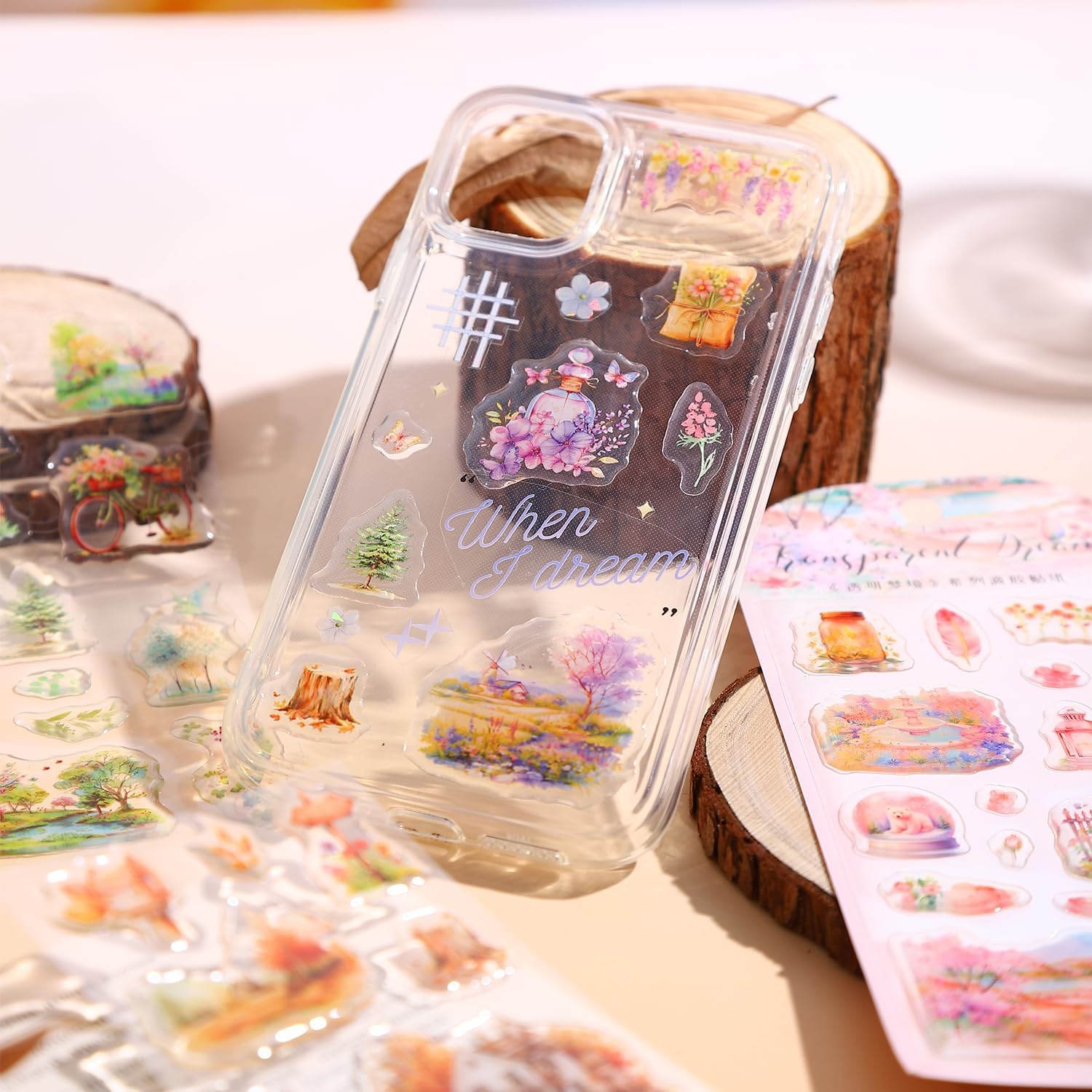 6pack Landscape 3D Epoxy Stickers, Cottagecore Aesthetic Scrapbook Supplies for Journaling, DIY Crafts, Phone Cases & Decorative Projects