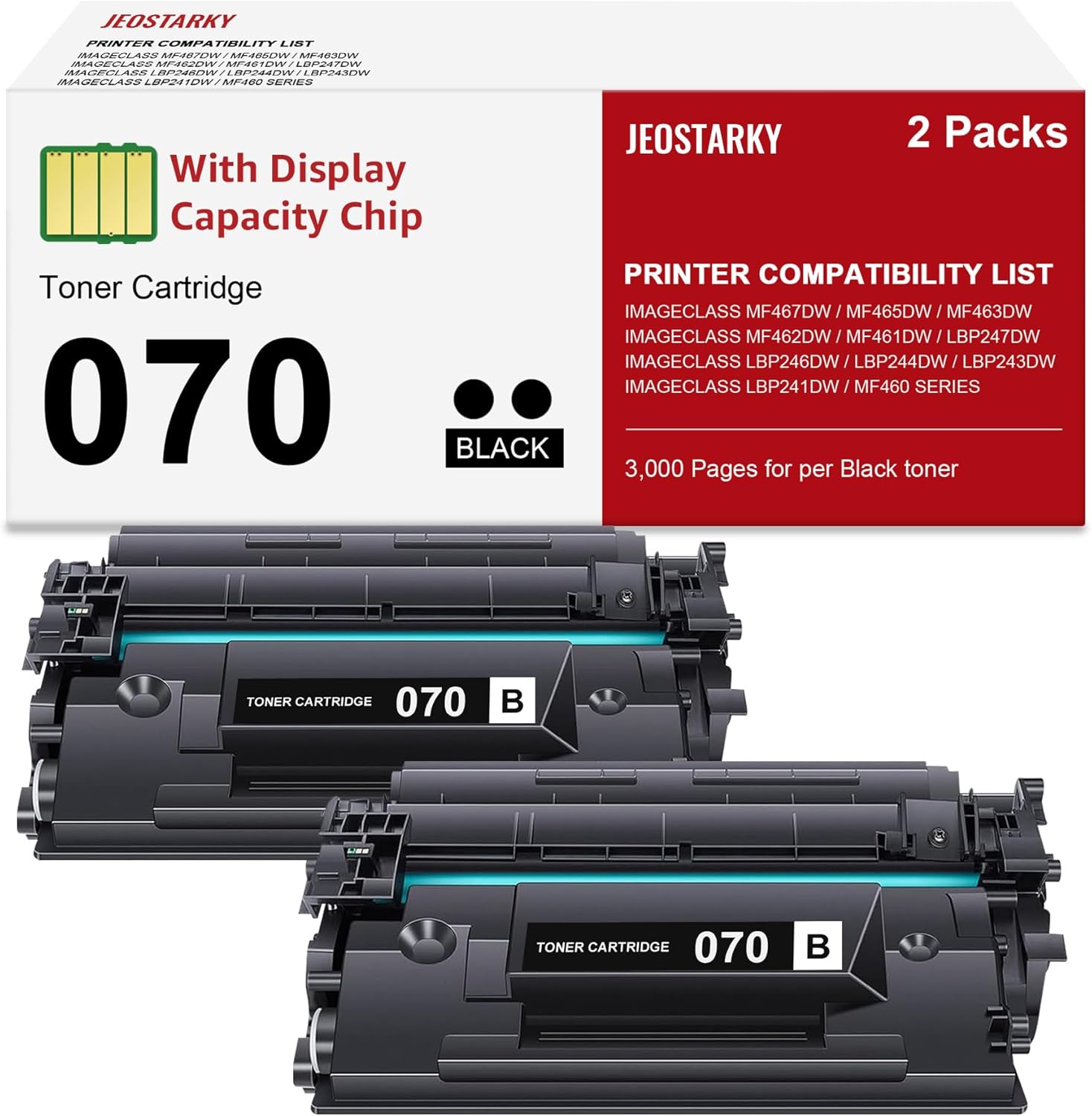 Compatible for Canon 070 Black Toner Cartridge Replacement for Canon 070h CRG070 Toner for Canon ImageCLASS MF465dw MF462dw MF460dw LBP246dw LBP247dw LBP243dw LBP240dw Laser Printer 2 Pack