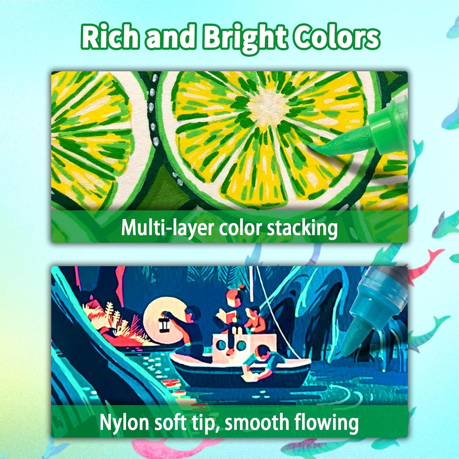 - 【Bright Colors & Wide Coverage】Betem 24 colors acrylic paint pens applys premium water-based ink for vivid colors and high covering, works well for multi-layer color stacking and highlighting, adding more depth to your artwork. No bleeding and color fading. Note: When not in use, please tighten the cap and place the pen horizontally.