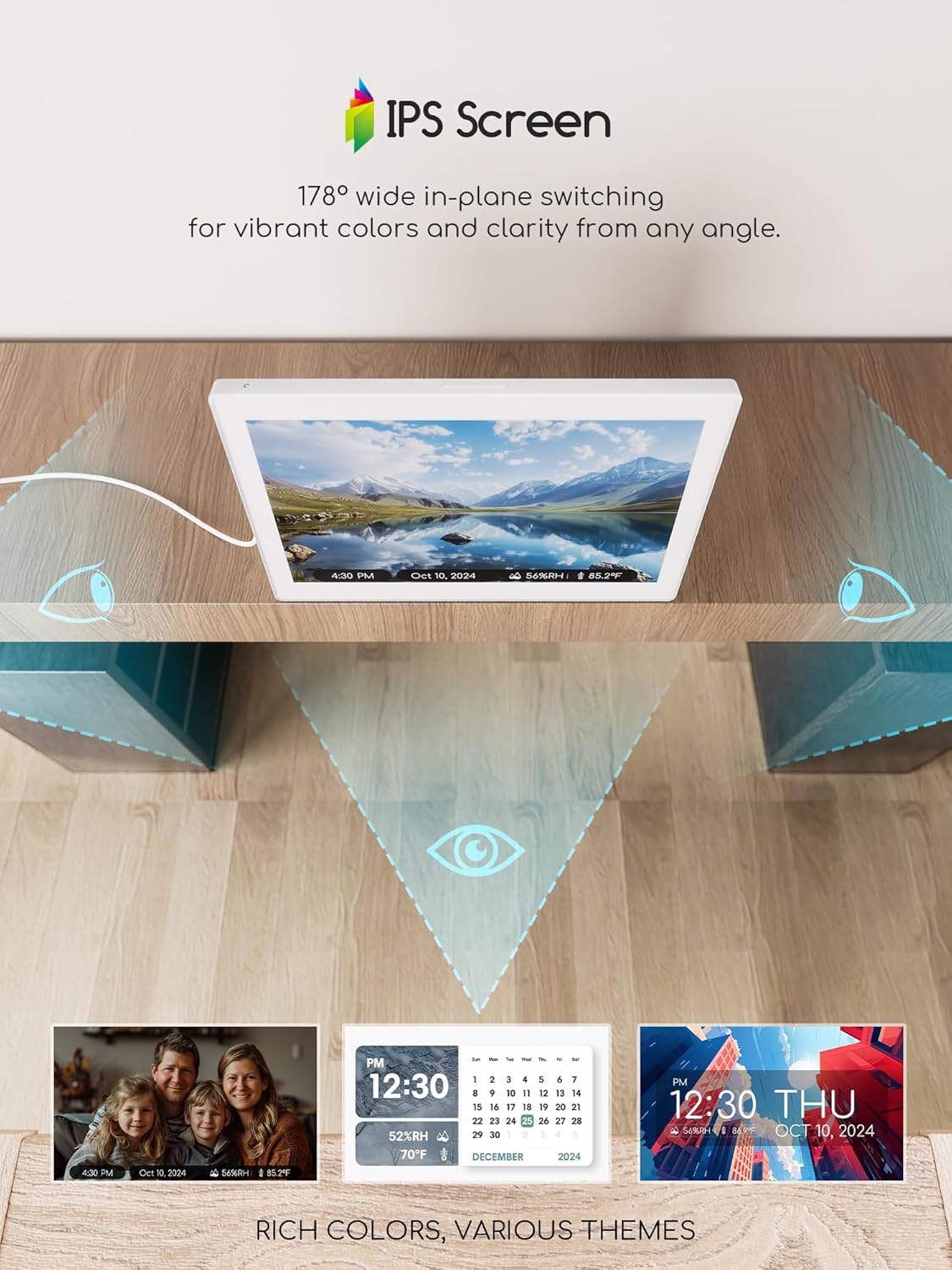 Raynic Digital Wall Clock, 10.1 Inch Large Display Digital Calendar Clock with 12 Themes, 20 Alarms, 20 Reminders, Auto Dimming,12/24 Hours, Temperature, Humidity for Seniors, Desk, Wall Mounted