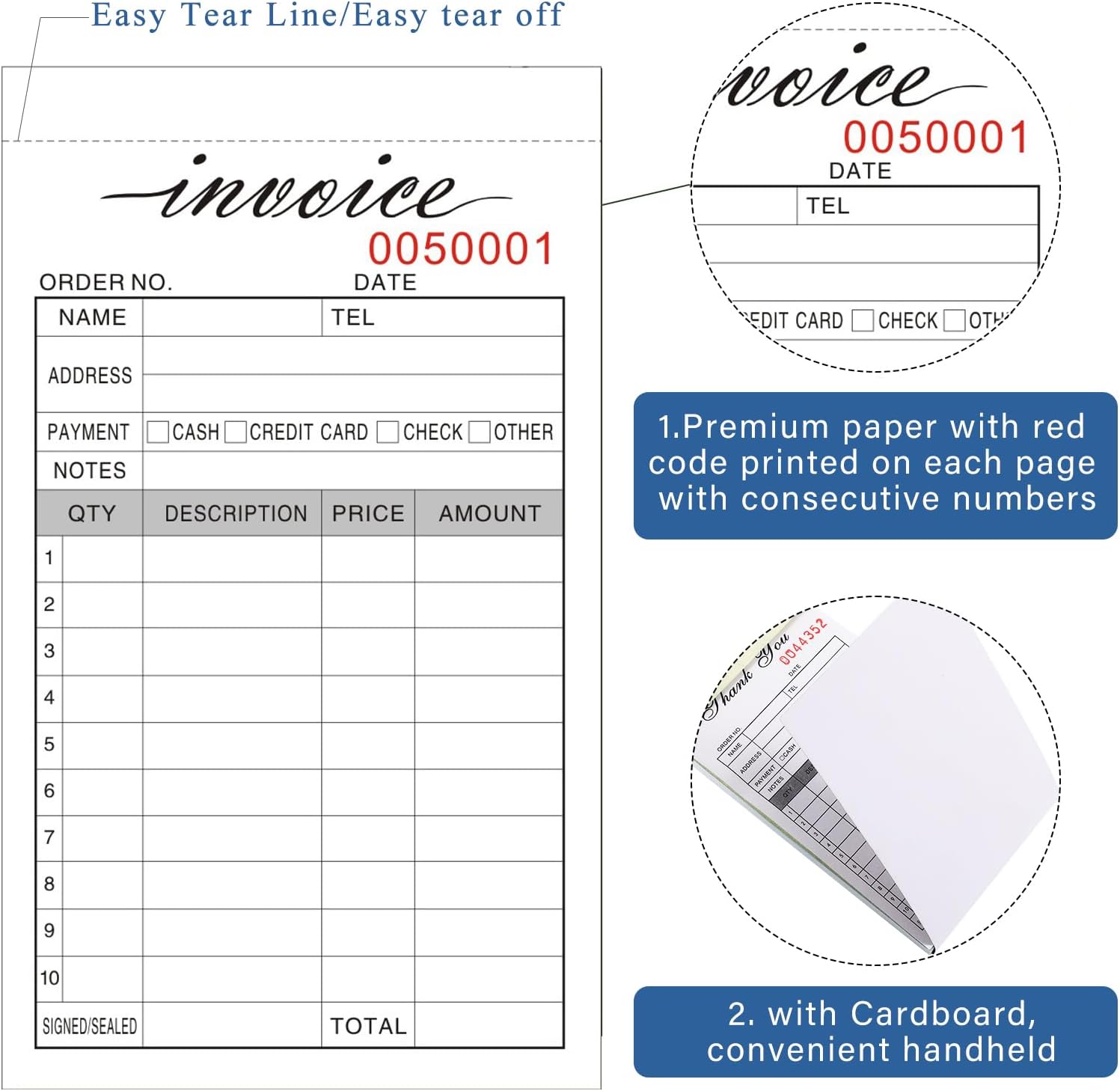 6 Pack Invoice Receipt Book, 3.4x5.5" Handheld 2-Part Carbonless Sales Invoice Book, Invoice Pad with Cardboard for Small Boutique Business, (50 Sets)