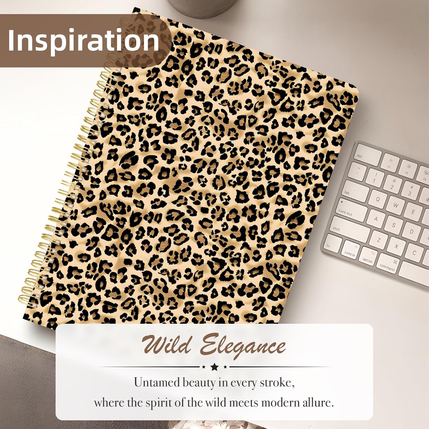 Cute Spiral Notebook journal A4 Aesthetic Pretty Design for Women Girls Kawaii with Pocket, 8.5 x 11 inch, Lined, Leopard