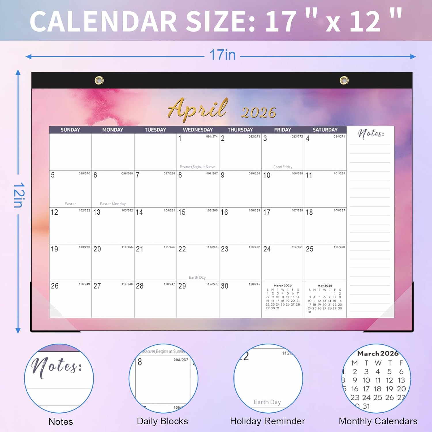 - đăDesk Calendar 2025-2026ă18 monthly large yearly desk/wall calendar 2026, covering july 2025 to dec 2026. (17" x 12") Each page has a monthly overview with mini-month references to help you plan and organize your school, office and home work efficiently.