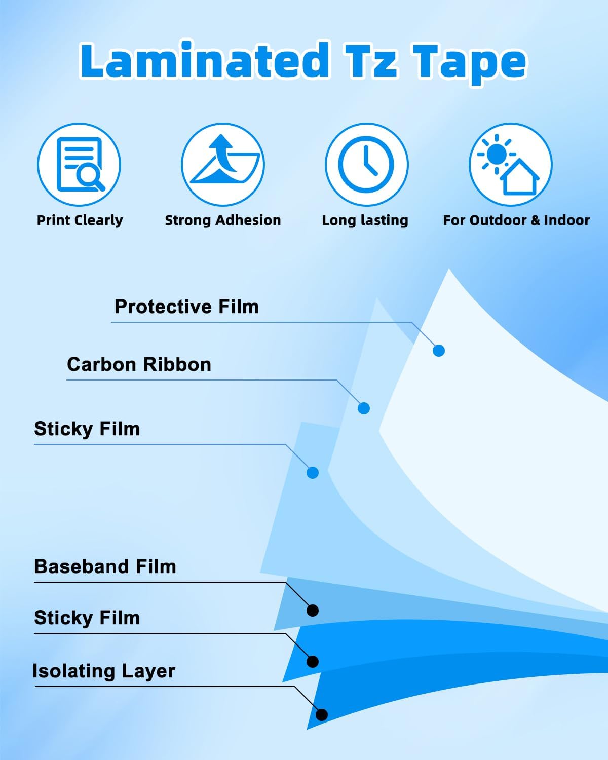 - Durable features: BAALAND TZ231 PTouch label maker tape is laminated designed, featuring water resistant, grease resistant, grime resistant, and temperature resistant, so it is durable for use outdoor or indoor