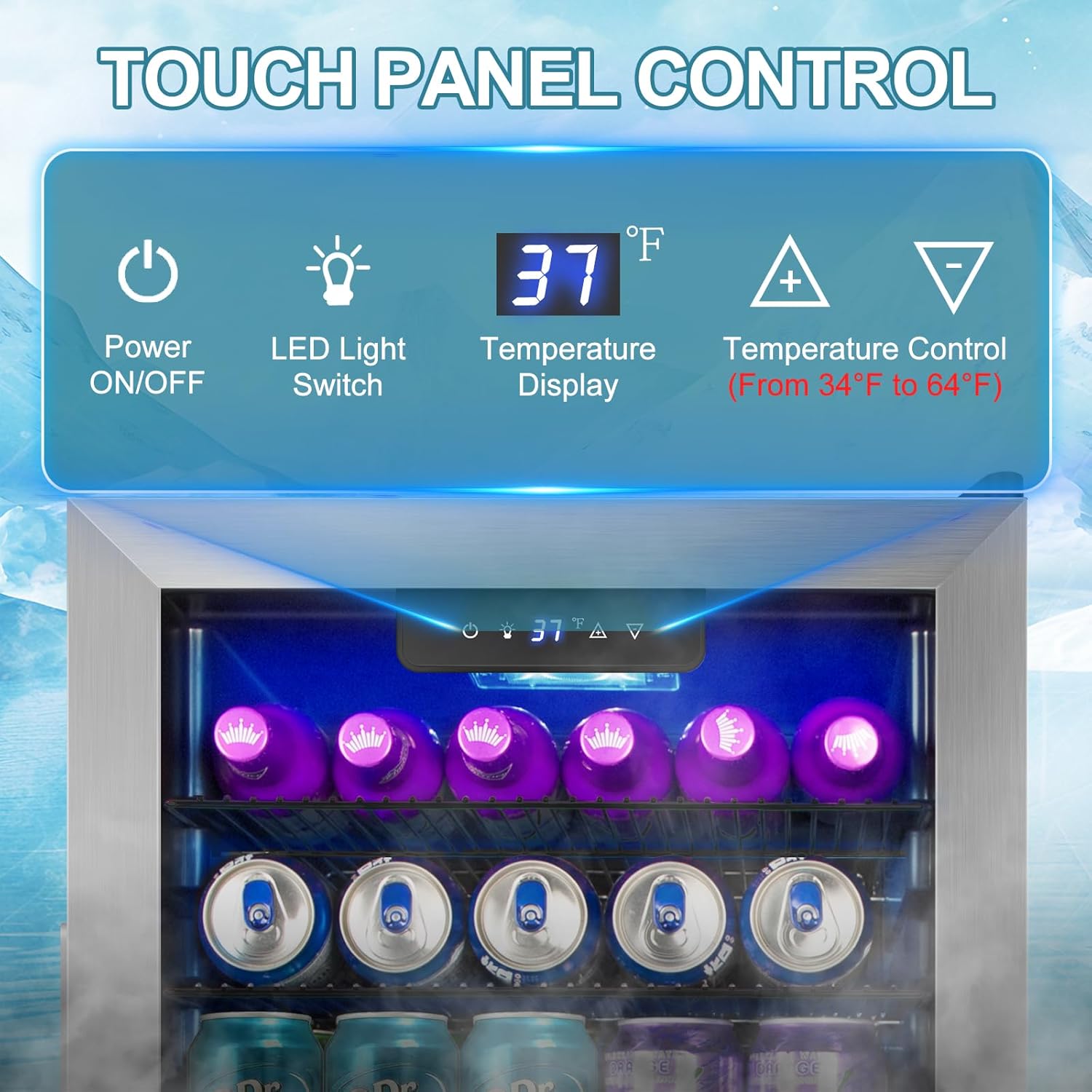 - SMART TOUCH CONTROL PANEL: The mini beverage fridge comes with an intuitive touch panel for effortless temperature adjustment, perfectly suited for modern lifestyles. With a wide temperature range (34 °Fâ64 °F), you have full control over your cooling experience