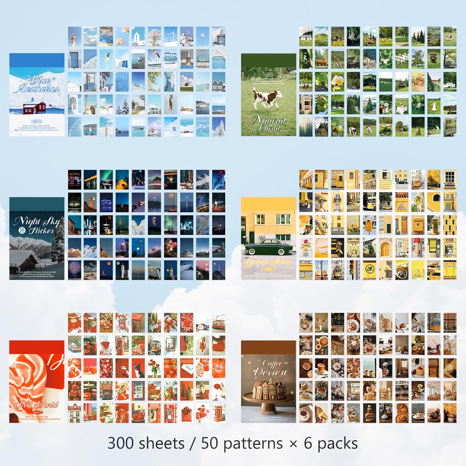 - Package Include: Each package comes with total 6 packs, each pack 50 pieces, total 300 pieces vintage aesthetic washi stickers.These self-adhesive scrapbook stickers measure 40x60mm/1.57x2.36 inches. They’re perfect size for adding small details to art journals.