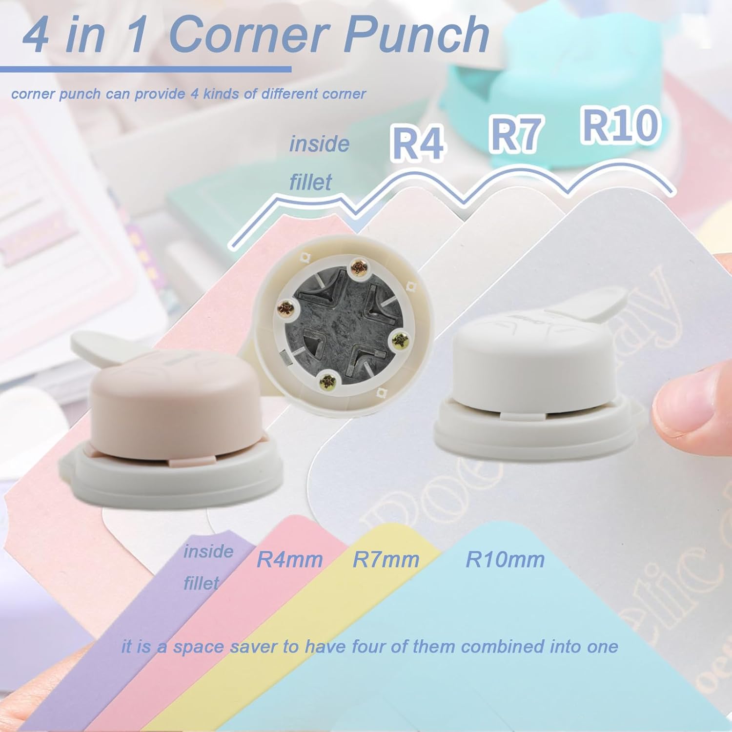 2 Pieces Corner Punch 4 in 1 Corner Rounder Punch Paper Corner Rounder for Making Scrapbooking (R4+R7+R10+Inside Corner) (White and Pink)