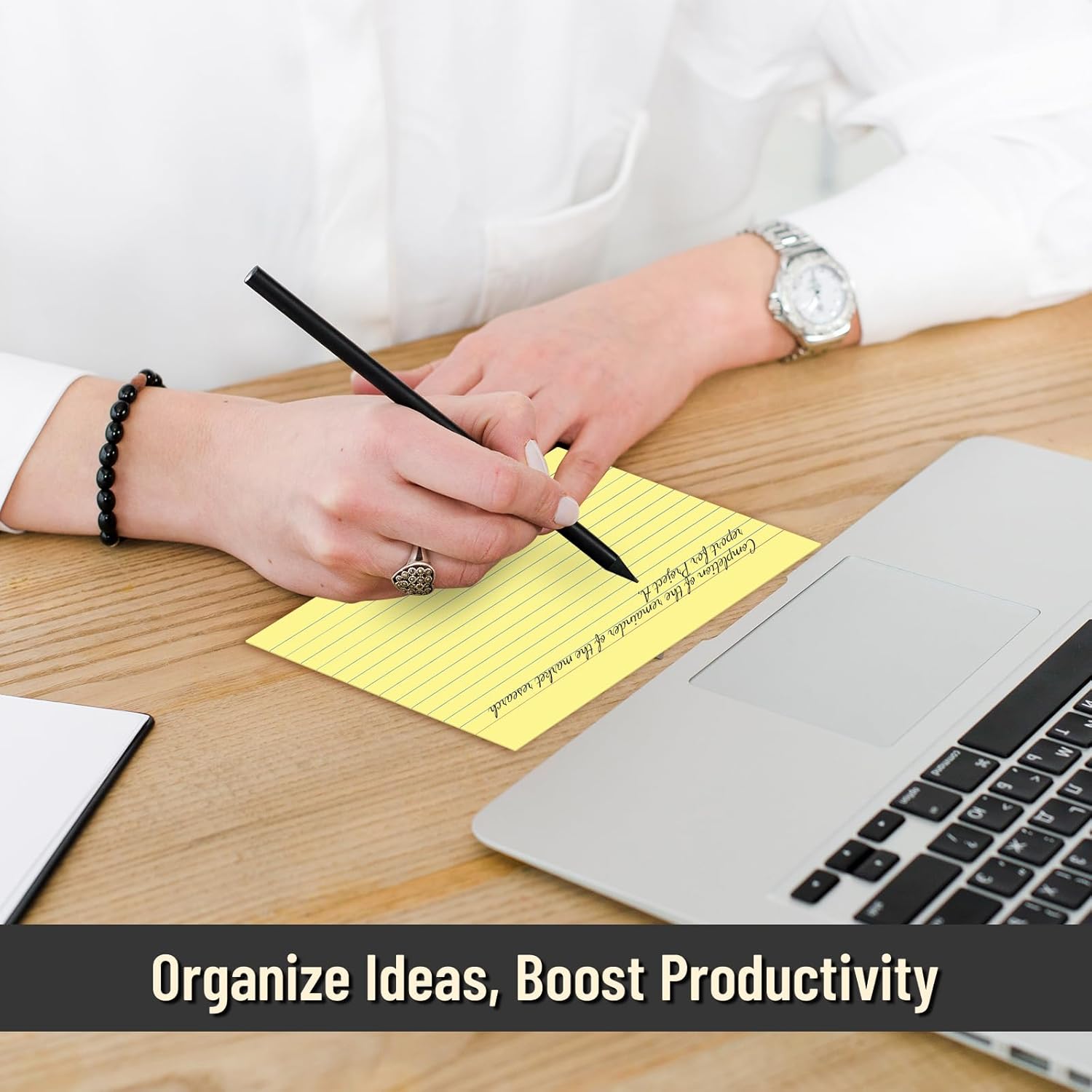 - [Bulk Value Pack & Organization Efficiency] Get 5 packs of 40 sheets each (200 total) yellow ruled index cards. Thick paper resists bleeding and curling, ideal for highlighters, pens, and markers