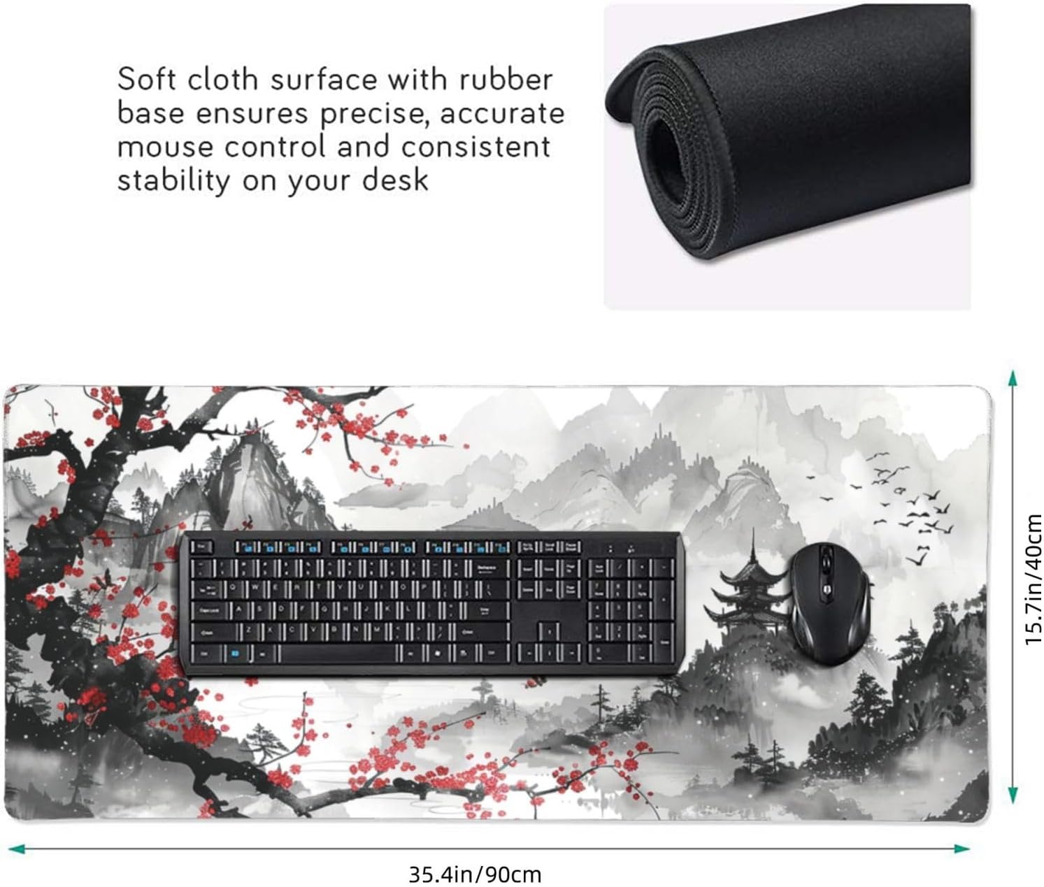 35.4 x 15.7 in, Waterproof XXL Large Mouse Pad for Desk, Extended Keyboard Mouse Mat for Computer Office, Big Laptop Mouse pad, Gaming Pc-Japanese Watercolor Cherry Blossom
