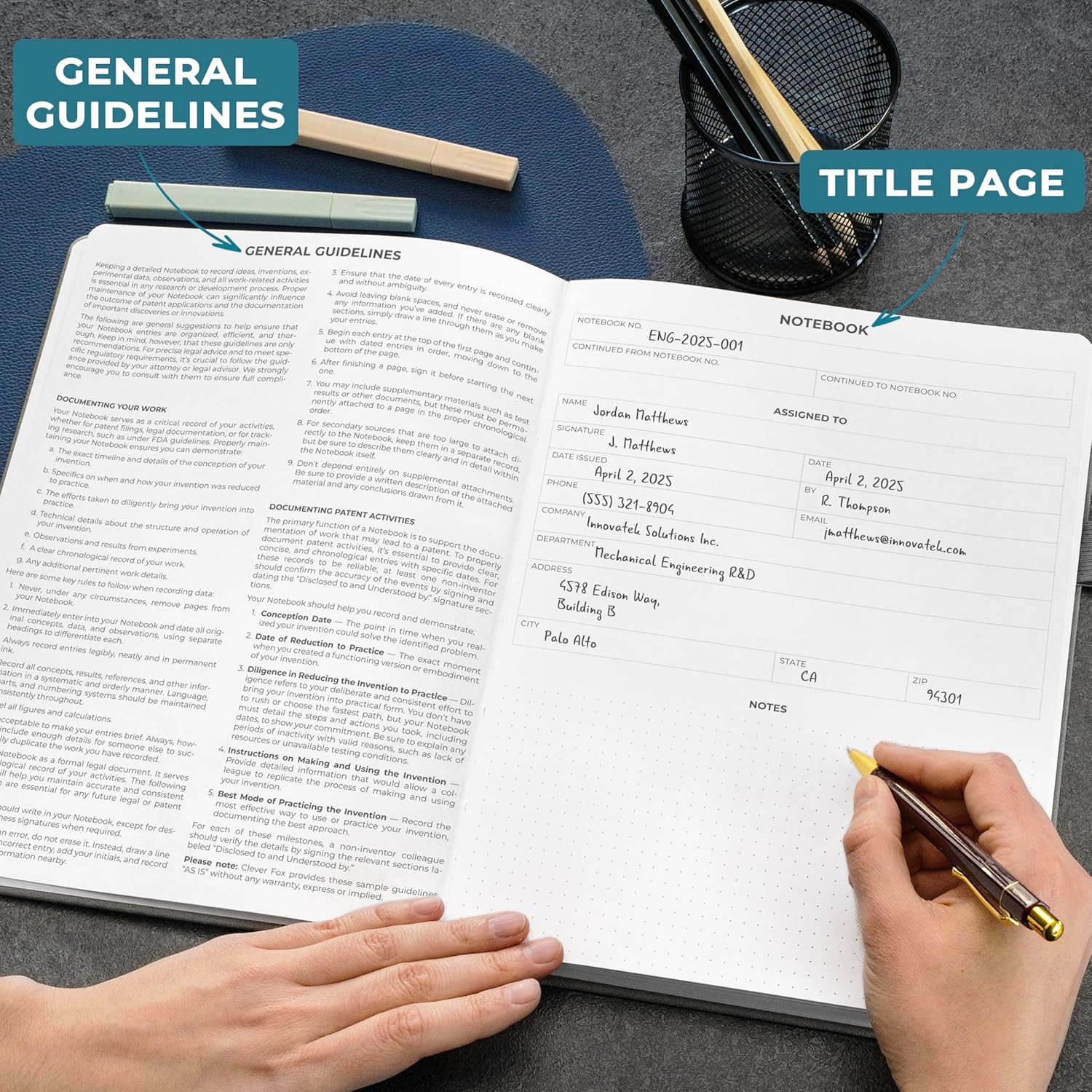 Clever Fox Engineering Notebook – Hardcover Grid Notebook with Numbered Pages, Table of Contents – Patent, Lab & Invention Journal for Engineers & STEM (Gray)