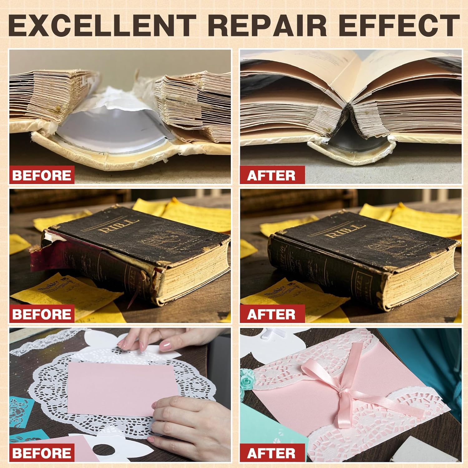 - BOOK SAFE & DRIES CLEAR: Our book glue is your book’s best friend! It dries completely clear, ensuring your pages stay pristine with no color changes or damage—making it perfect for preserving your most treasured, vintage, or rare books. With incredible flexibility, the bond won’t harden, crack, or break, keeping your book as good as new. Plus, it won’t distort or wrinkle your pages, delivering a smooth, flawless repair that lasts for years to come.