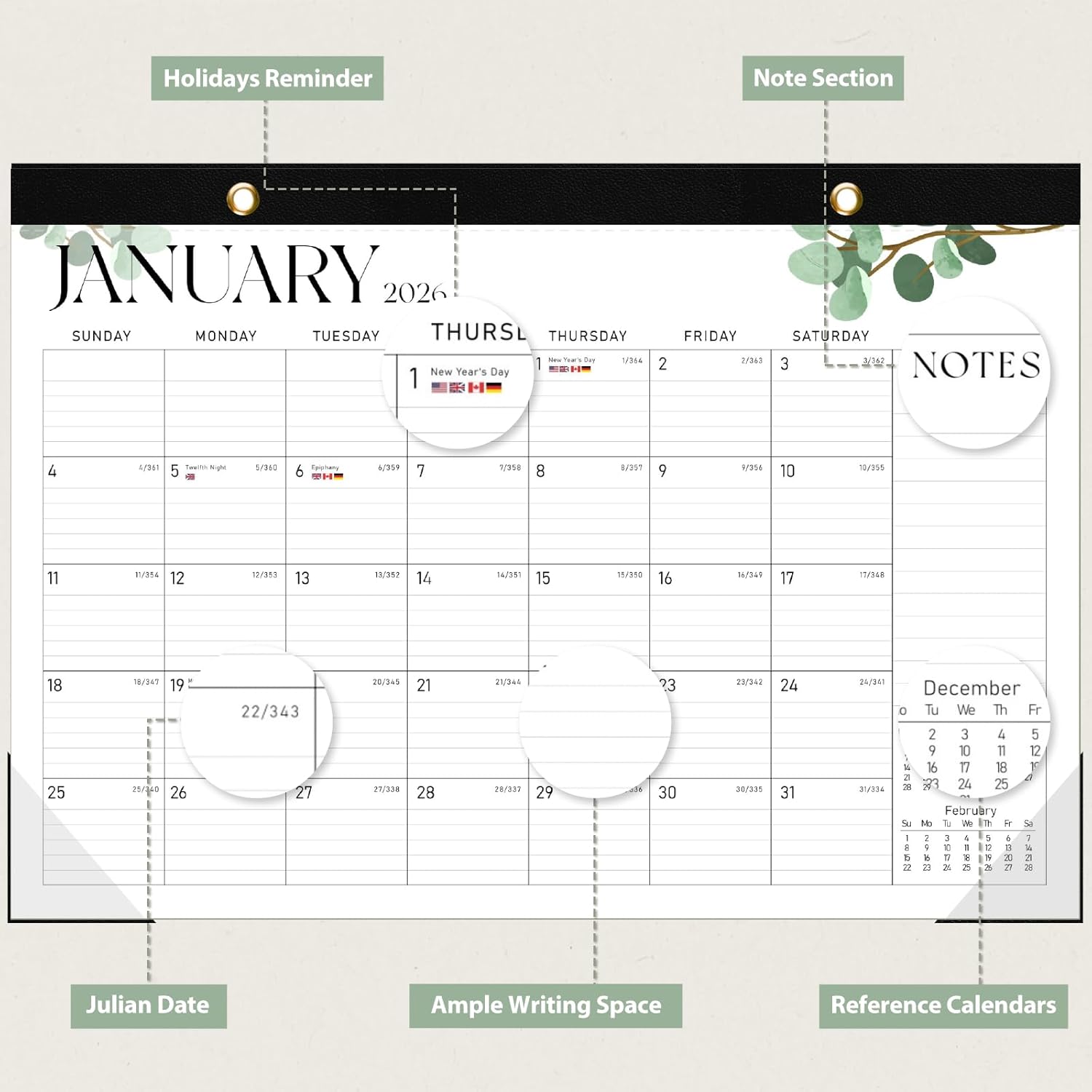 - [18 MONTHS CALENDAR] - Our 2025-2026 desk calendar (17"x12") covers 18 months from July 2025 to December 2026. With highlighted holidays and Julian dates, this calendar ensures you never miss an important deadline or event, making it perfect for long-term projects, school or teaching schedules, and work commitments.