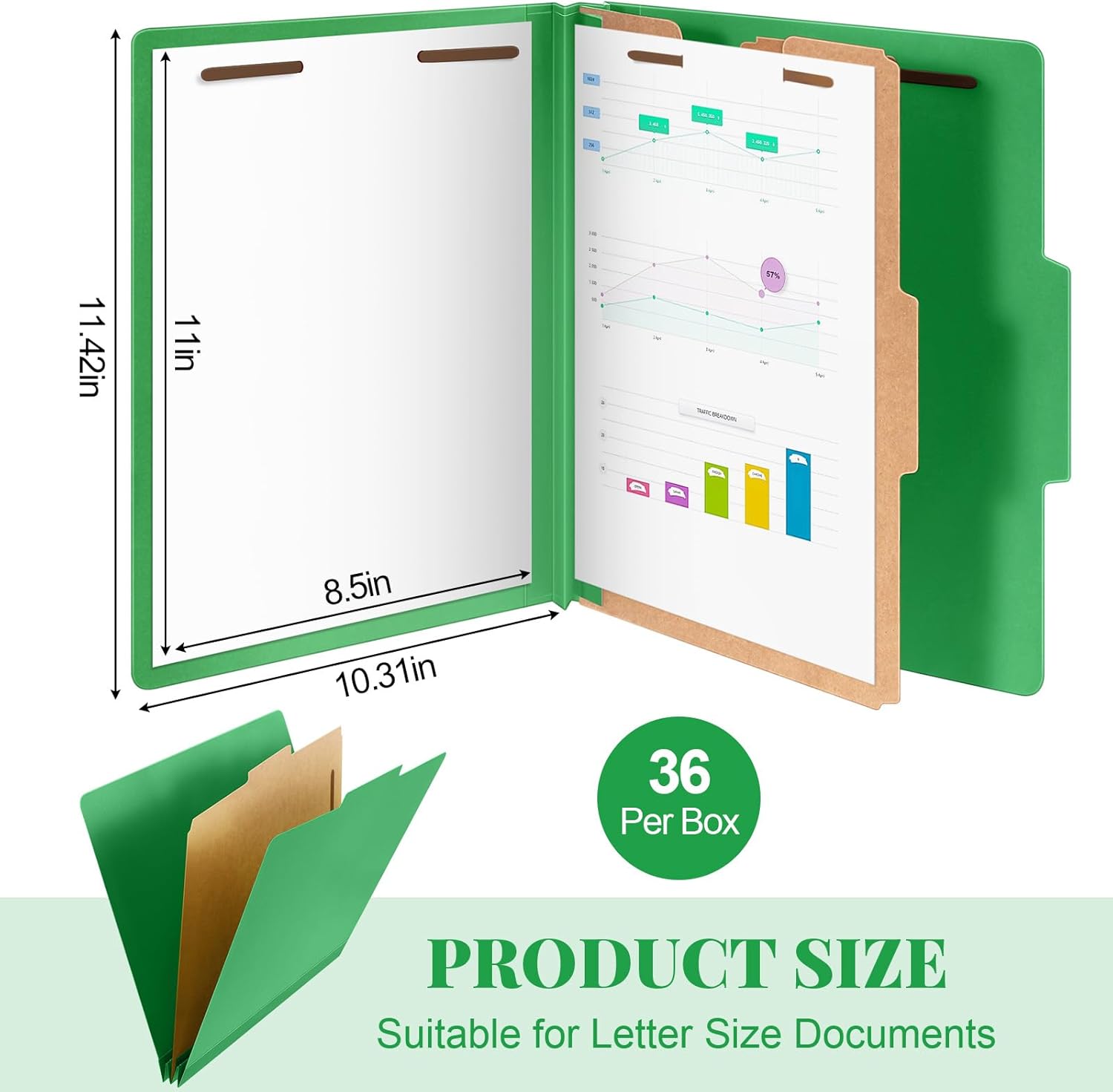 36 Pcs Classification Folders Letter Size, 1 Divider Pressboard File Folder with Fasteners, Expanding File Organizer Bulk for Teachers, Clergy, Office, Church, Christmas Donations (Green)