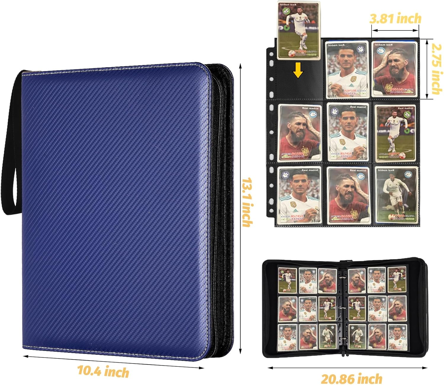 - 【3-Ring Binder with 40 Pages Sheets】 The 3-ring design is convenient for you to add or remove sheets at will. 9-Pocket binder with 40 pages of sheets can hold up to 720 cards, providing plenty of space to get all your cards organized.