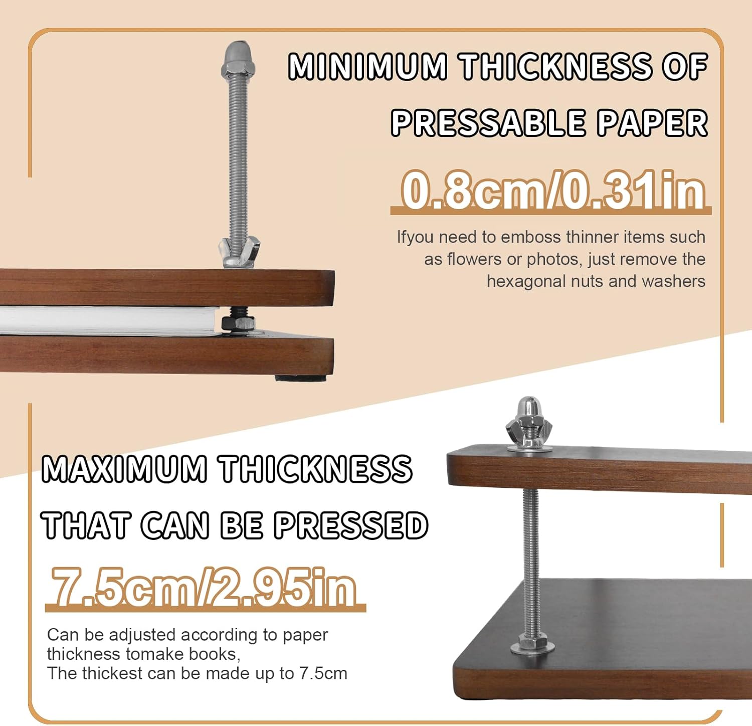 - Premium Material : The book press is made of bamboo, and the screw and nut are stainless steel, ensuring durability and long-lasting performance. Stress-resistant bamboo boards can withstand a lot of pressure without warping or cracking