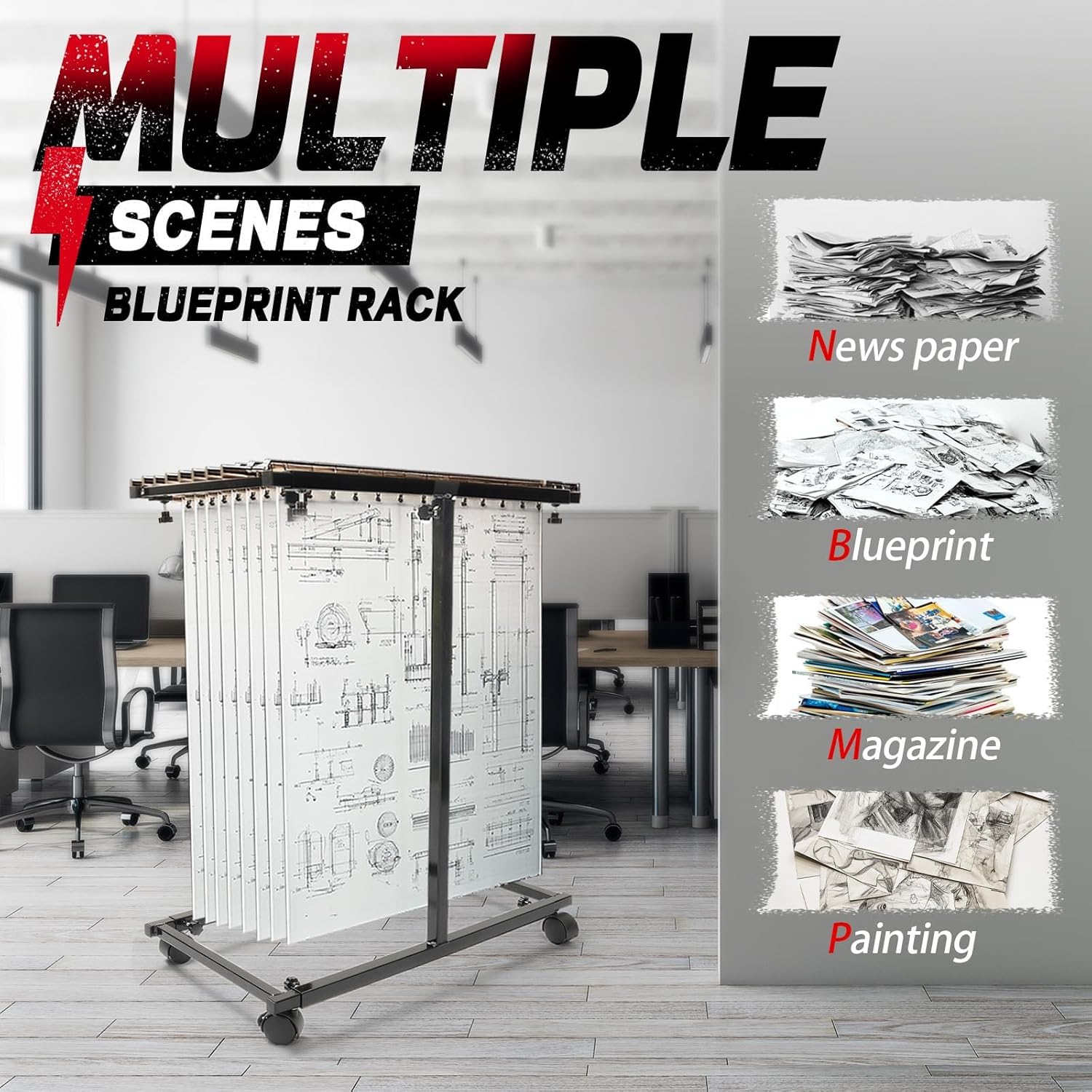 - Multiple Scenarios: Blueprint rack is suitable for diverse scenarios such as homes, schools and offices, and can effectively meet your needs for displaying and organizing blueprints, documents, posters, architectural drawings, maps, and so on