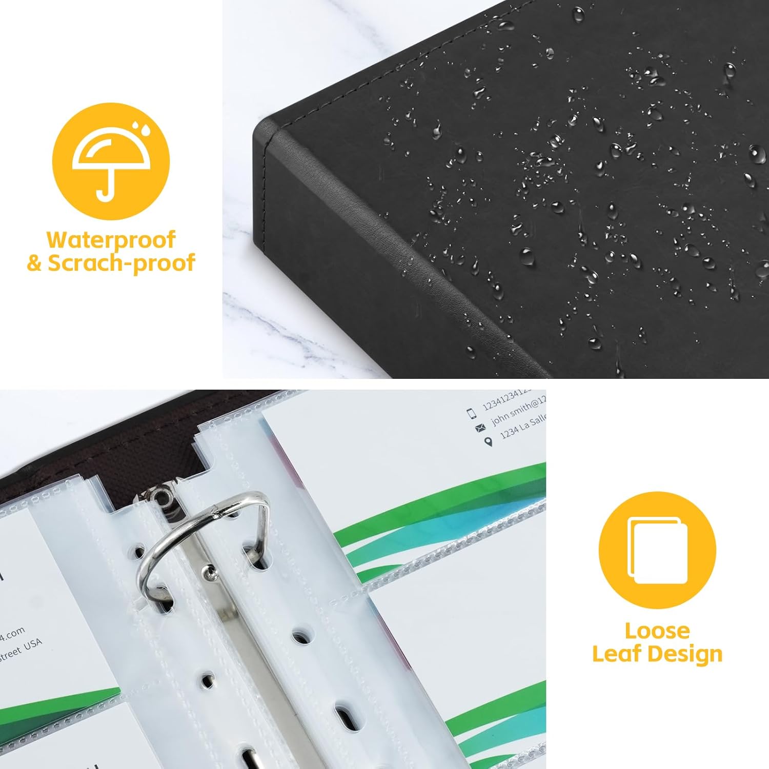 - Eco-Friendly PU Leather Cover: Business card binder made from waterproof and eco-friendly PU leather, offering durable protection with a sleek, professional appearance