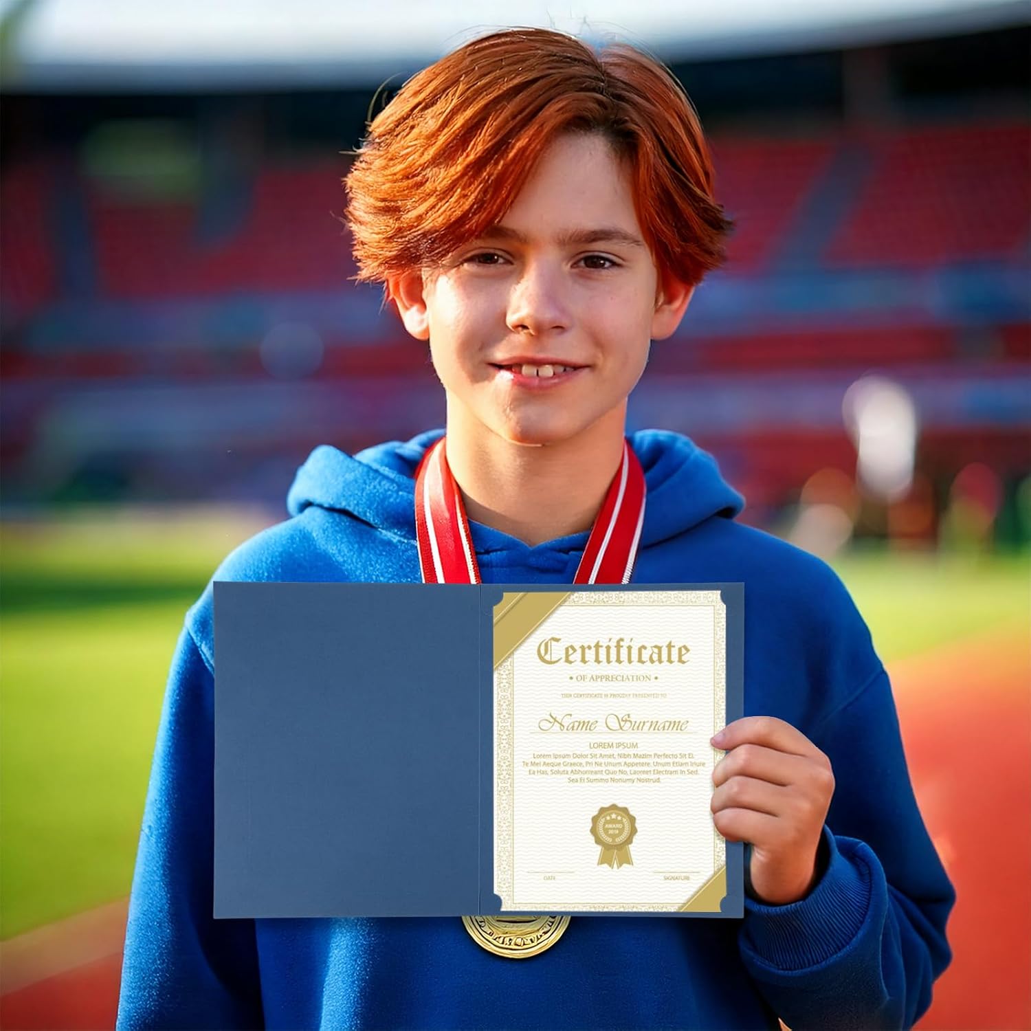 - PROFESSIONAL LOOKING: Each certificate cover is blue and printed with a classic gold foil border design. It is perfect for presentations, award ceremonies, and summer camps.