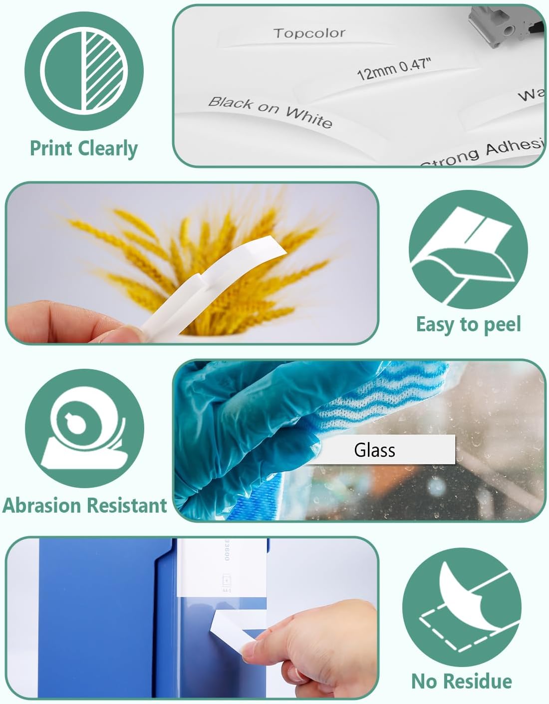 - Applications: The laminated 12mm 0.47 white tape is suitable for indoor or outdoor use. Such as home, office, school, industry, warehouse, chemistry laboratory, hotel, and hospital. It is perfect for labeling gifts, kitchen seasonings, files, folders, shelves, and books