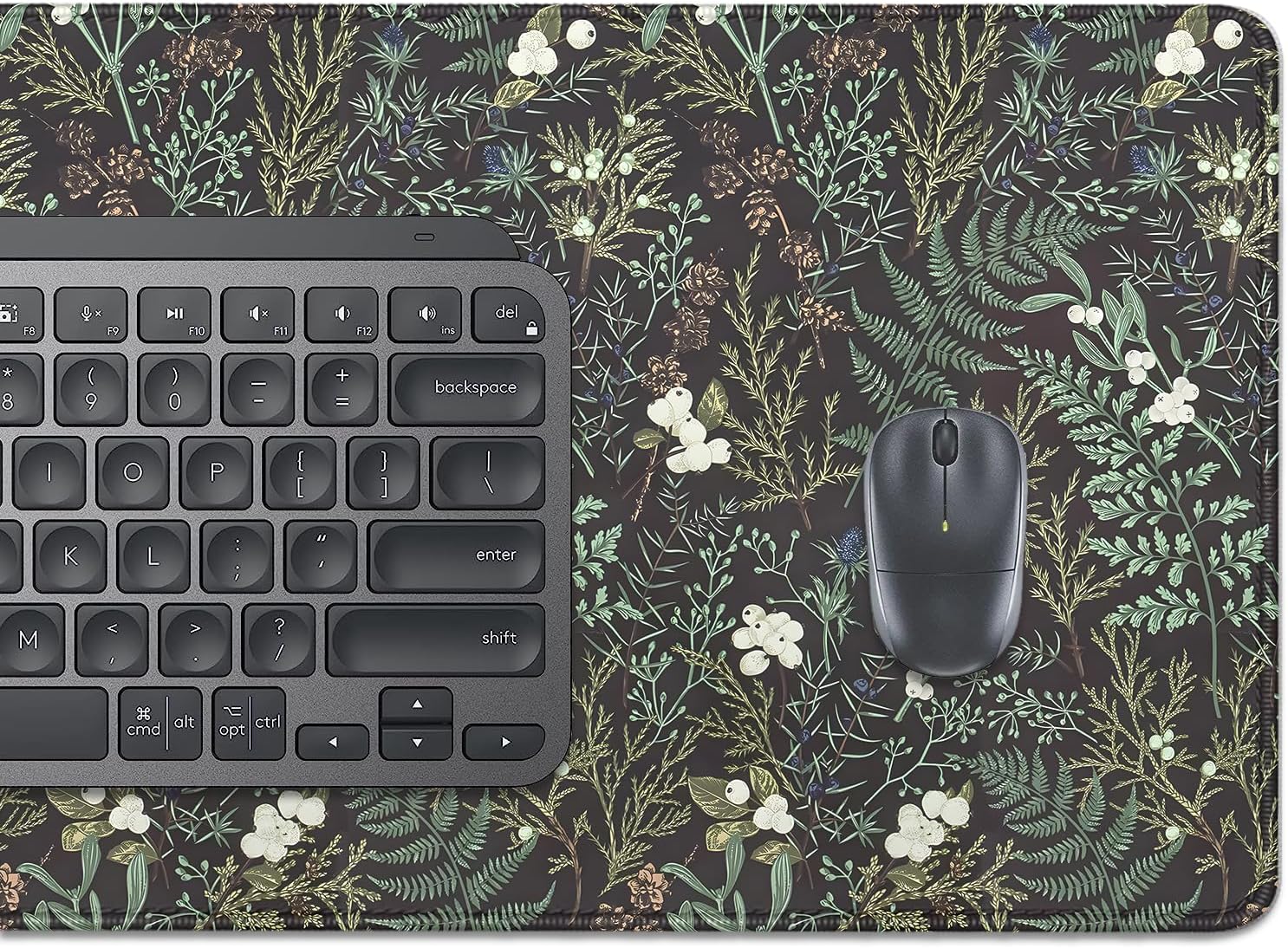 Dark Green Plant Desk Pad Mouse Pad,Vintage Green Fern Leaves Mouse Mat with Stitched Edges,Non-Slip Rubber Base Mousepad for Office PC Keyboard Laptop and Home Work Desk Mat(27.5X11.8 in)